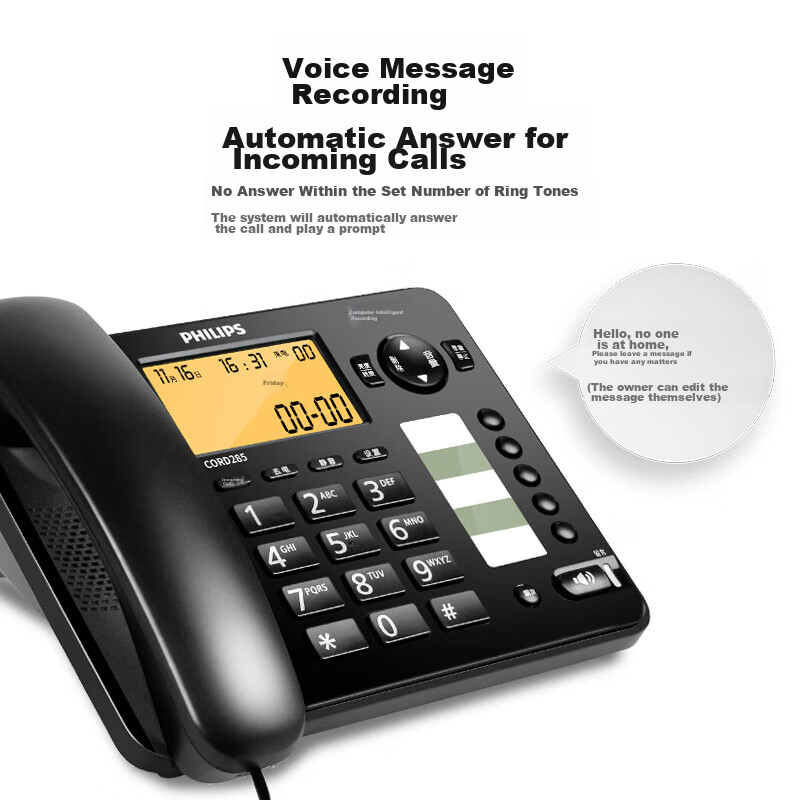 10 цен на Стационарный записывающий телефон Philips CORD285 Black, для записи сообщений, большой объем памяти