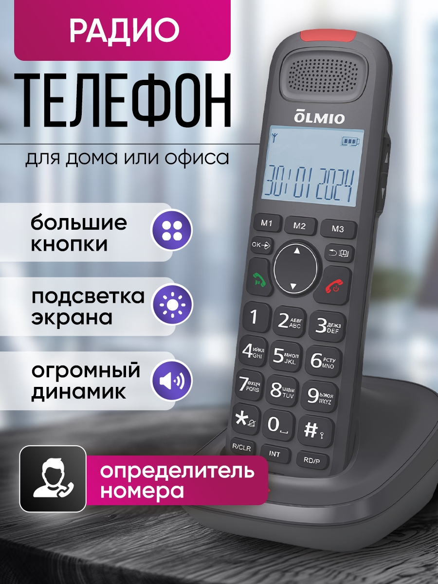 Радиотелефон домашний беспроводной DECT для офиса и дома на русском языке, радио телефон для пожилых, домашний с базой информация: