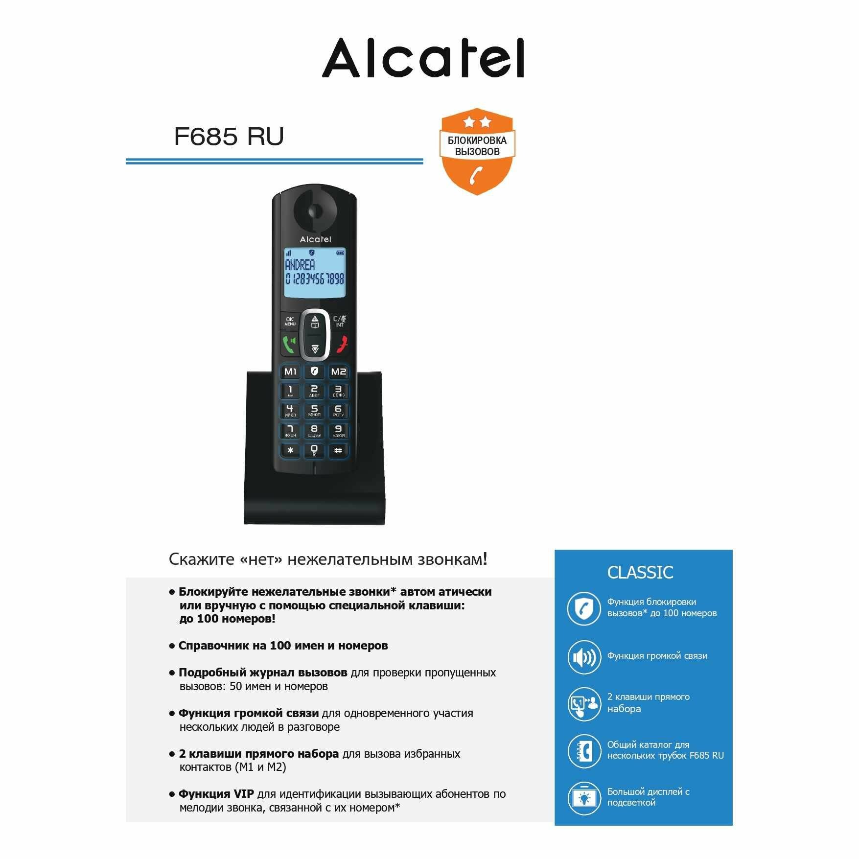 Радиотелефон ALCATEL F685 RU WHITE (белый) информация: