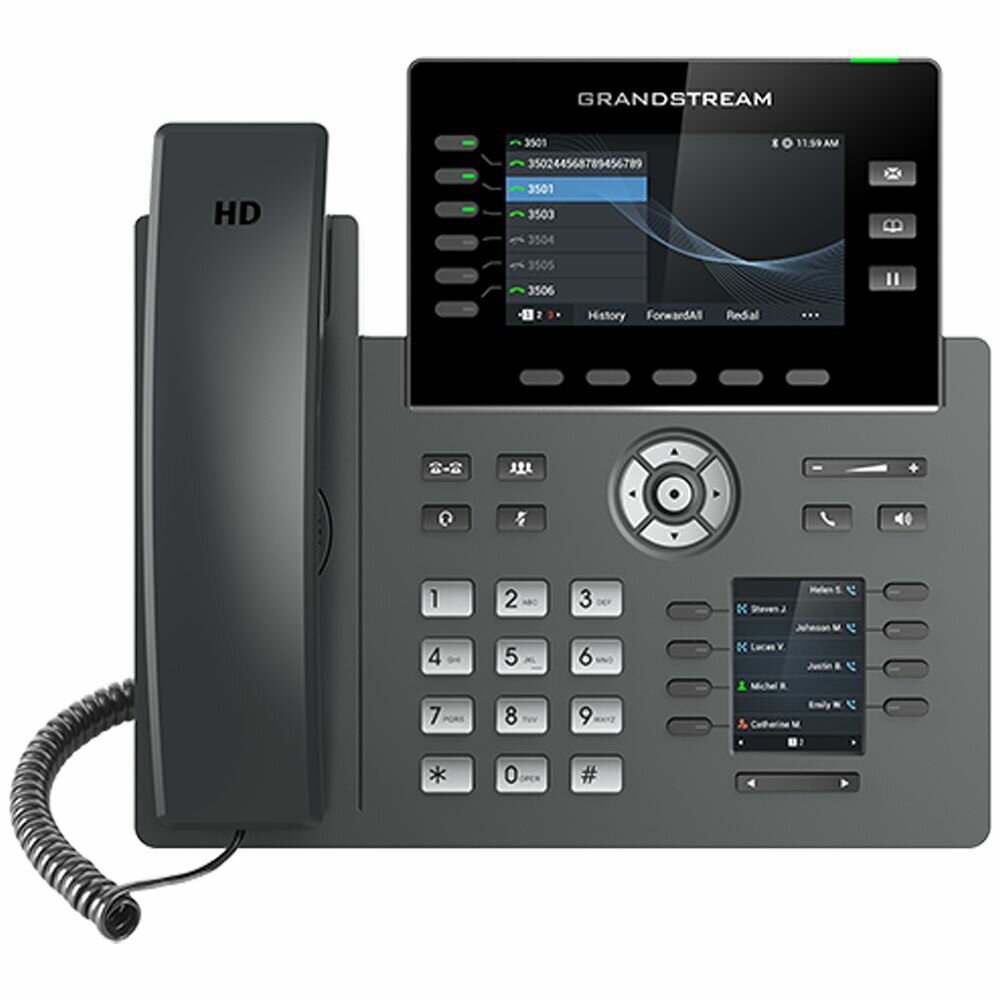 IP-телефон Grandstream GRP2616, 6 SIP аккаунтов, 4,3 цветной дисплей 480 x 272, конференция на 3 абонента, поддержка EHS, Wi-Fi/BluetoothUSB/PoE/1000 Mbps информация:
