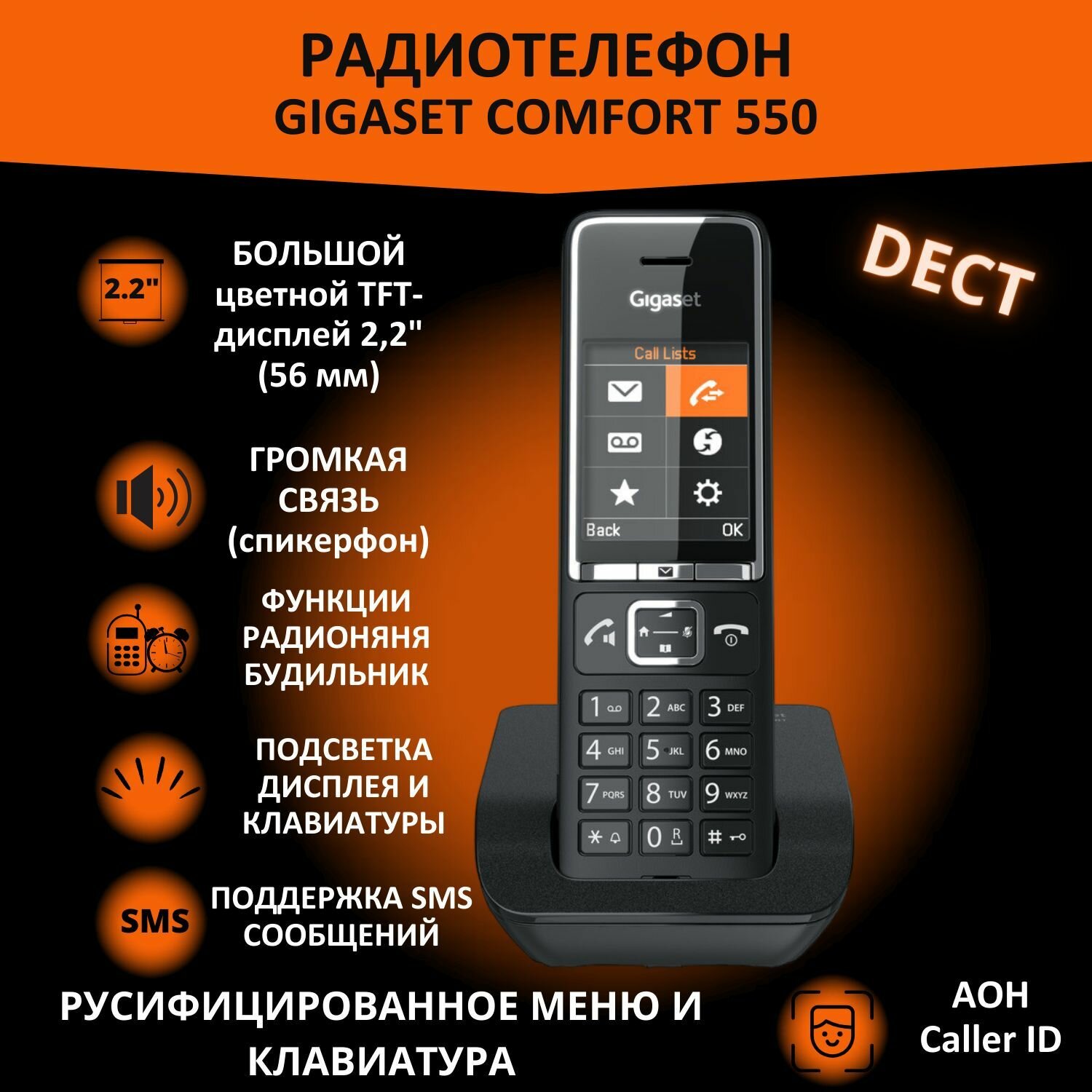Радио телефон Dect Gigaset Comfort 550 RUS черный АОН информация: