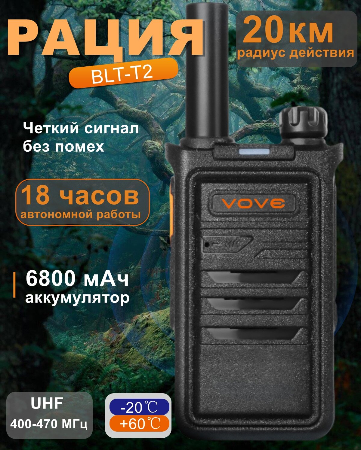 Портативная (дальнодействующая) рация VOVE BLT-T2 12W информация: