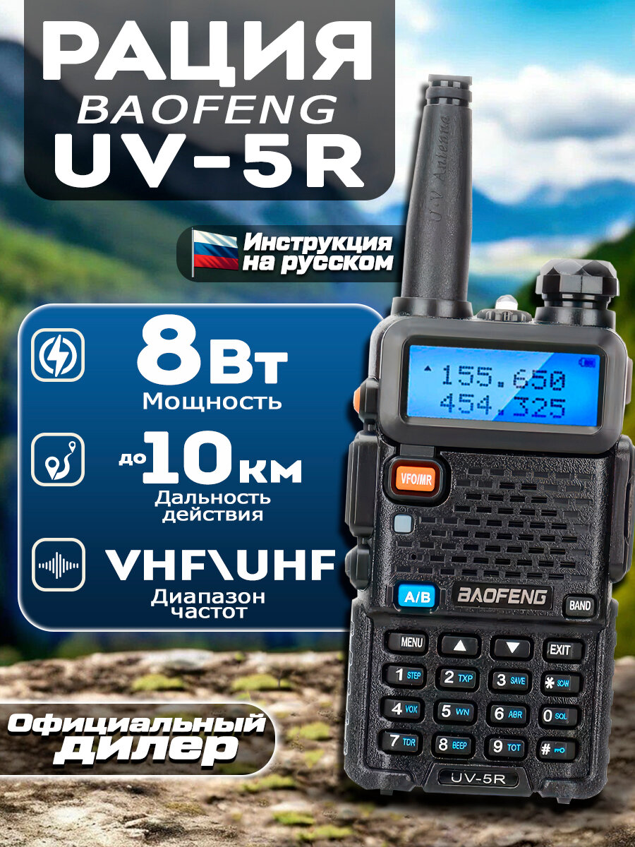 Рация Baofeng UV-5R 8W (3 режима мощности) 1800 мАч, Цвет Черный информация: