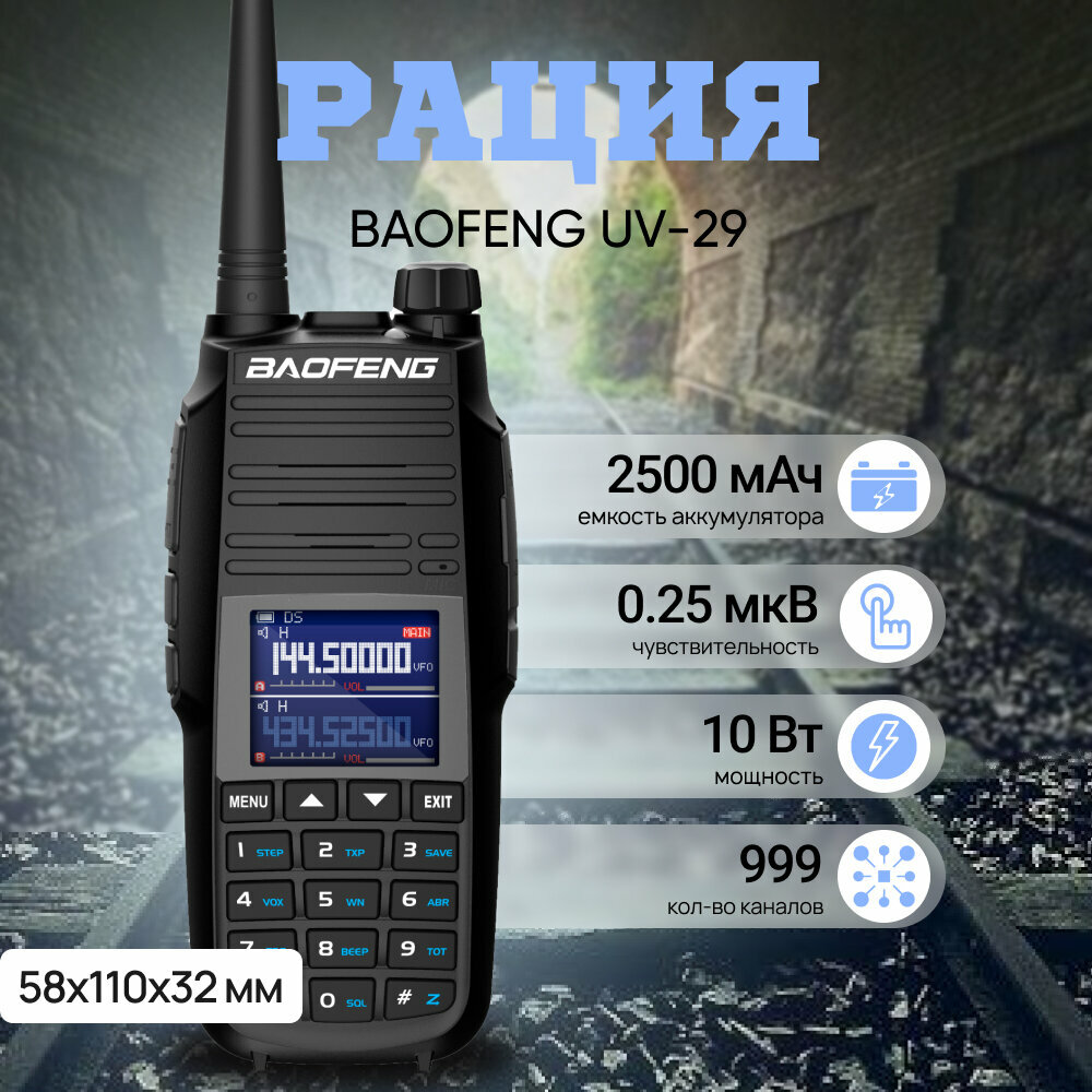 10 цен на Рация Baofeng UV-29 аналоговая, 10 Вт, IP54, 2500 мАч, до 10 км, 136-174 МГц, 220-260 МГц, 400-520 МГц