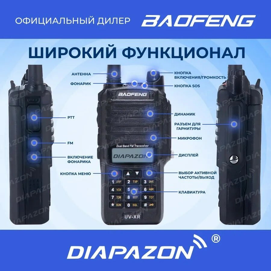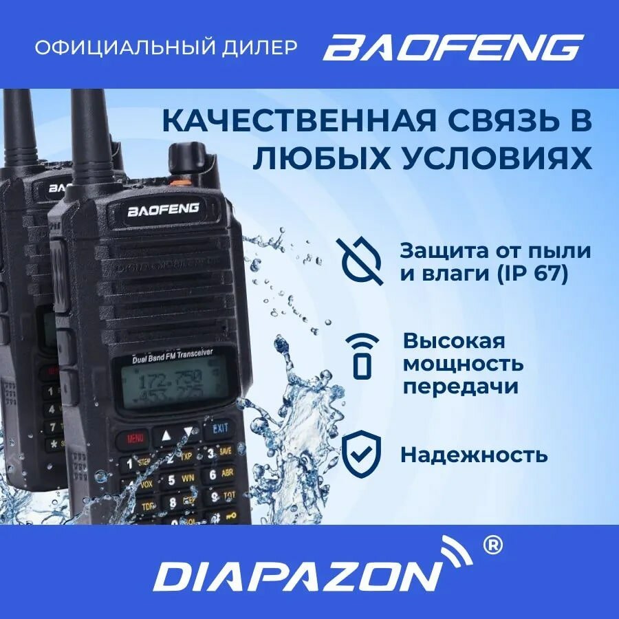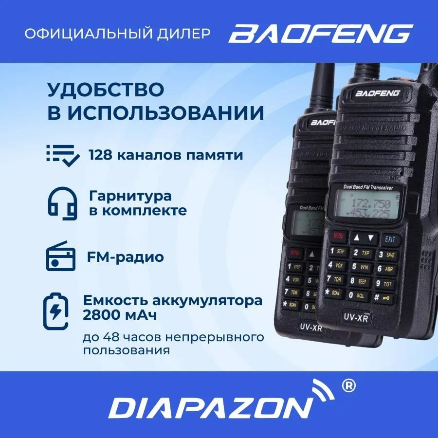 Отзывы на Комплект раций BAOFENG UV-XR 2 шт TYPE-C, 8 Ватт, влагозащита IP-67, с гарнитурами
