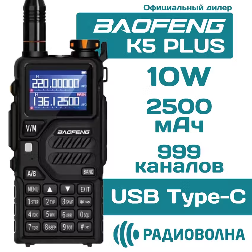 10 цен на Рация Baofeng K5 PLUS 10W (USB type-C, с большим цветным дисплеем, 3 режима мощности)
