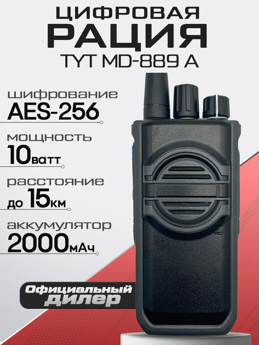 Цифровая рация TYT MD-889A DMR, мощность 10W, радиус до 15 км, AES256 информация: