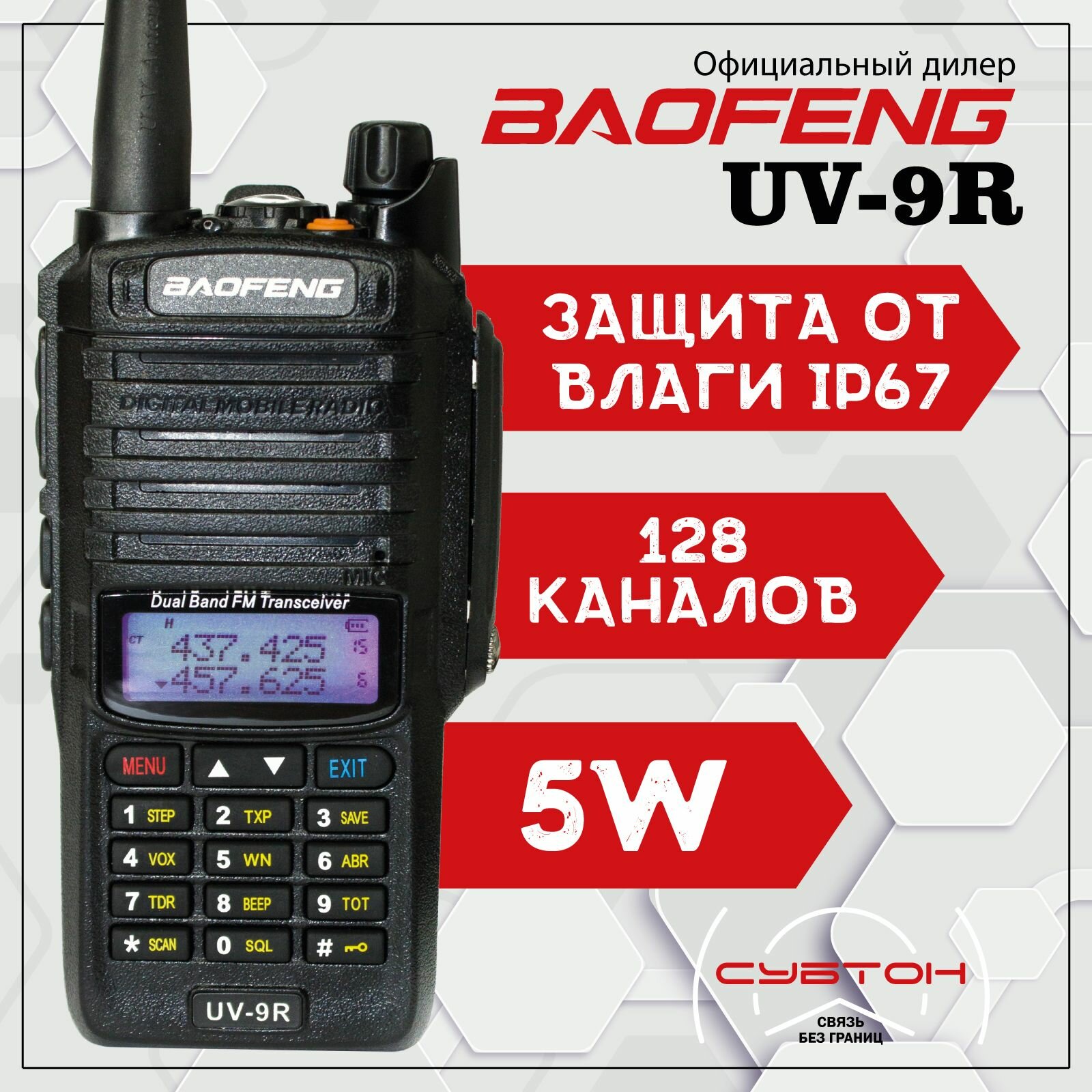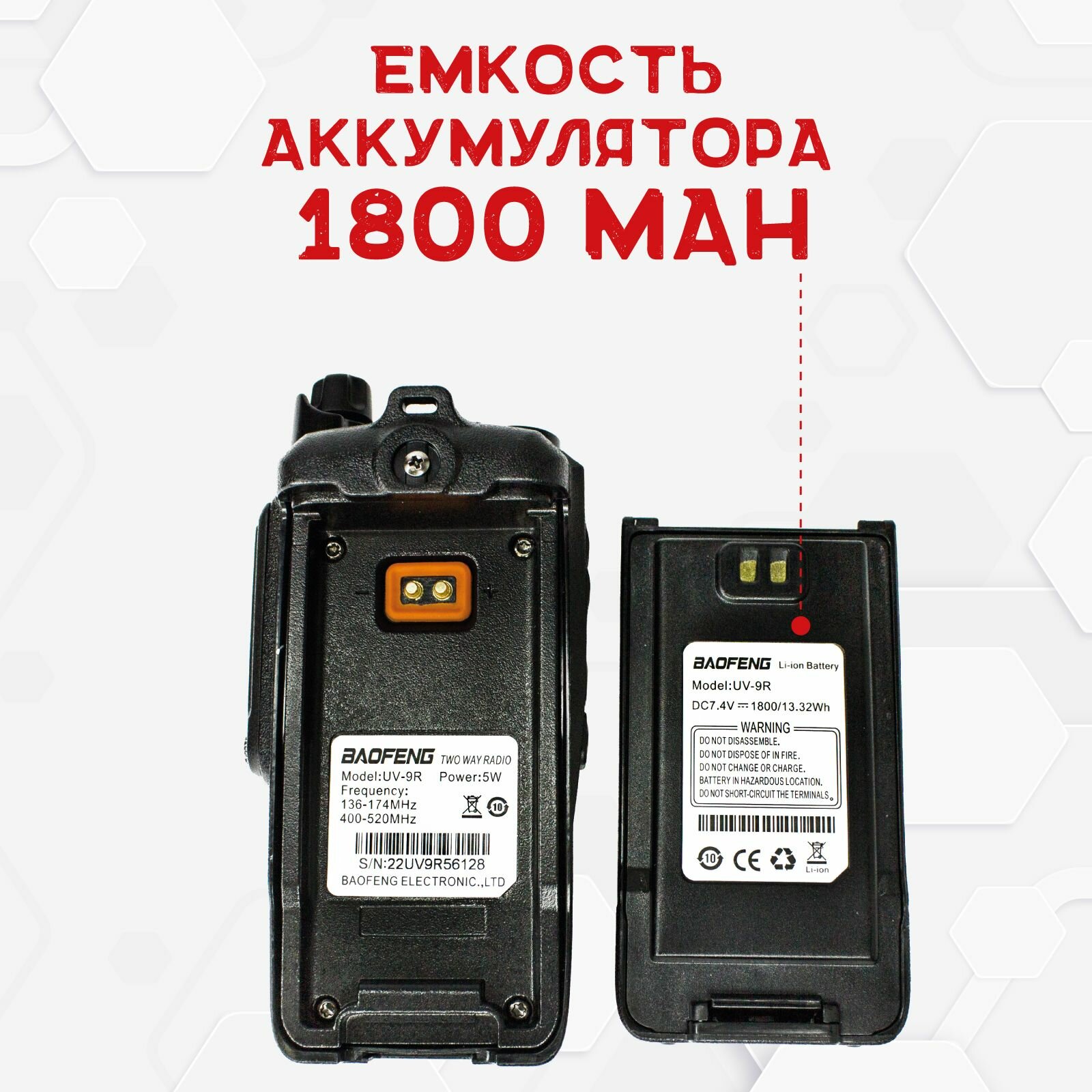 Влагозащищенная рация Baofeng UV-9R 5W с гарнитурой (1800 мАч, UHF/VHF, IP67) информация: