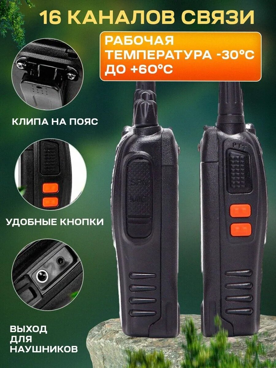 10 цен на Рация Черная Комплект 2 шт. / Портативная радиостанция для охоты и рыбалки с аккумулятором