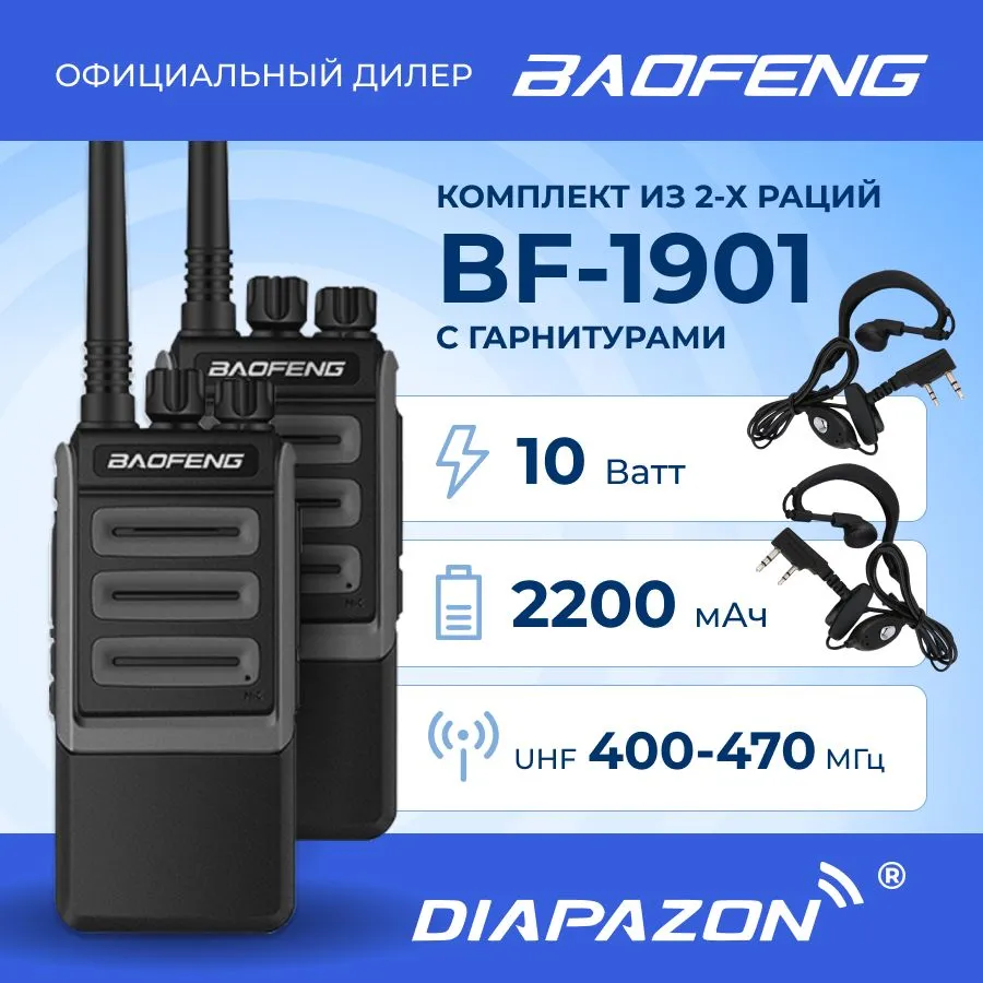 Комплект раций BAOFENG BF-1901 2 шт, 10 Ватт, с гарнитурами информация: