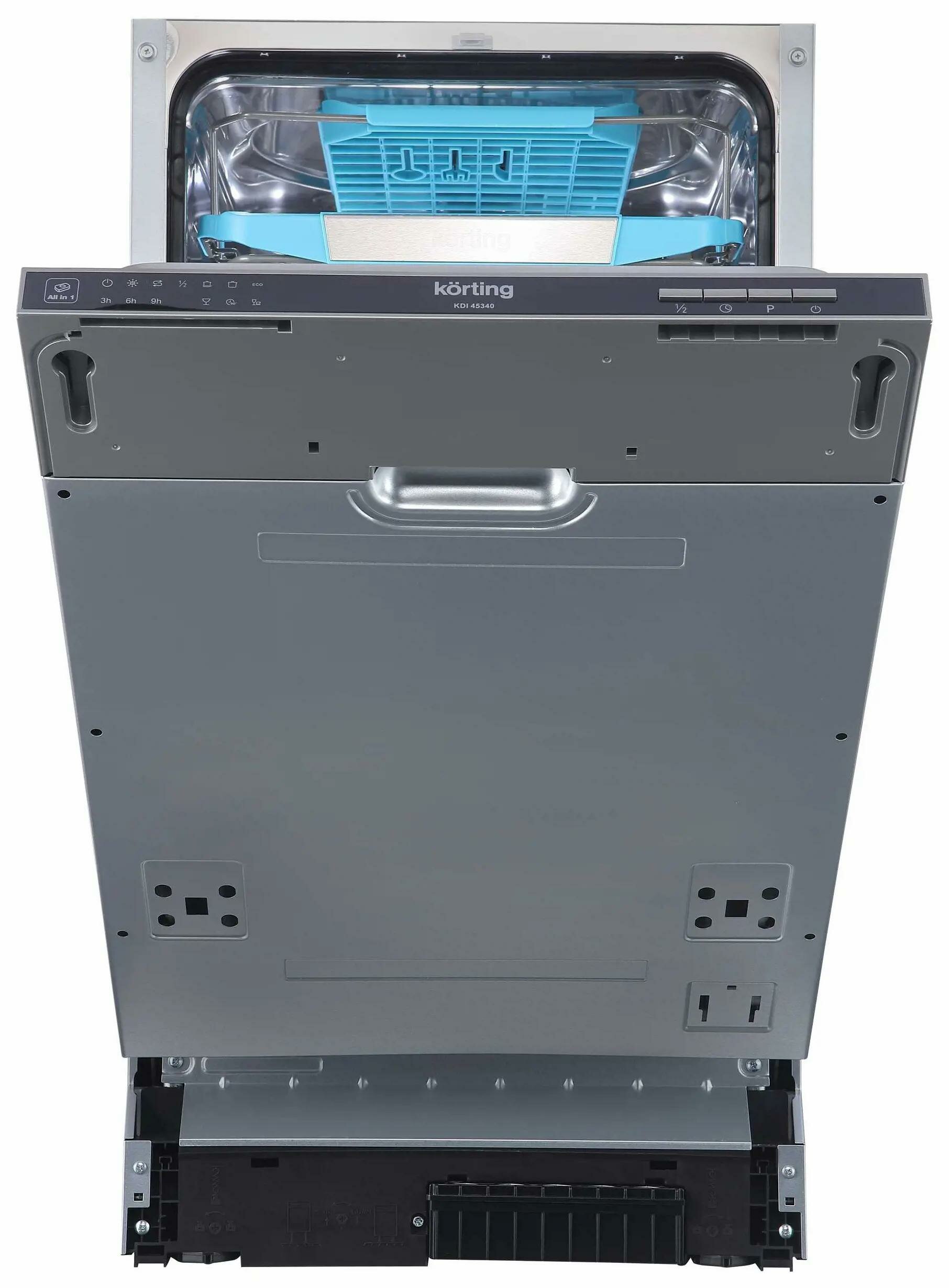 Встраиваемые посудомоечные машины Korting/ Полновстр., 45 см, 10 компл.,Третья мини-корзина для столовых приборов, А++/A/A, Электронное управление,индикаторы белого цвета Cold White, 6 программ, Активная сушка, Отложенный старт: 3/6/9 часов, Разбрызгивате