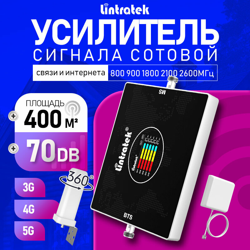 Мобильный усилитель сигнала Lintratek 5 диапазонов 800-2600 МГц антенна 4G AGC для дома и офиса
