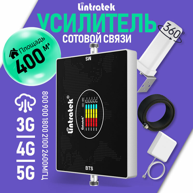 Репитер GSM Lintratek 5 диапазонов 800-2600 МГц 10dbi антенна AGC 15м кабель 3G 4G 5G информация: