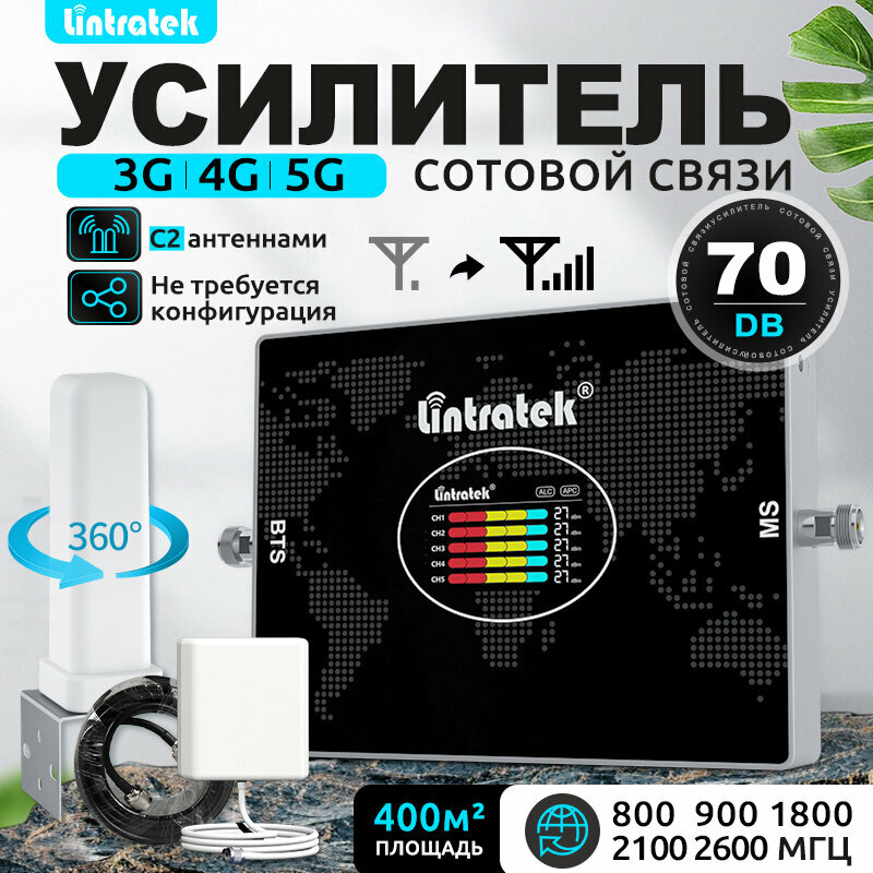 Усилитель сотовой связи Lintratek 5 диапазонов B20 B8 B3 B1 B7 с 10dbi антенной и 15м кабелем для 400м² информация: