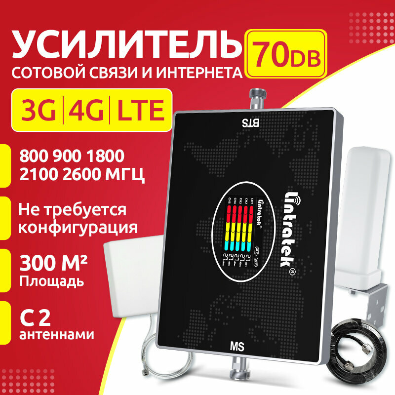 Усилитель сотовой связи Lintratek 5 диапазонов 800-2600 МГц с AGC антенна 4G 15м кабель 400 м² покрытие