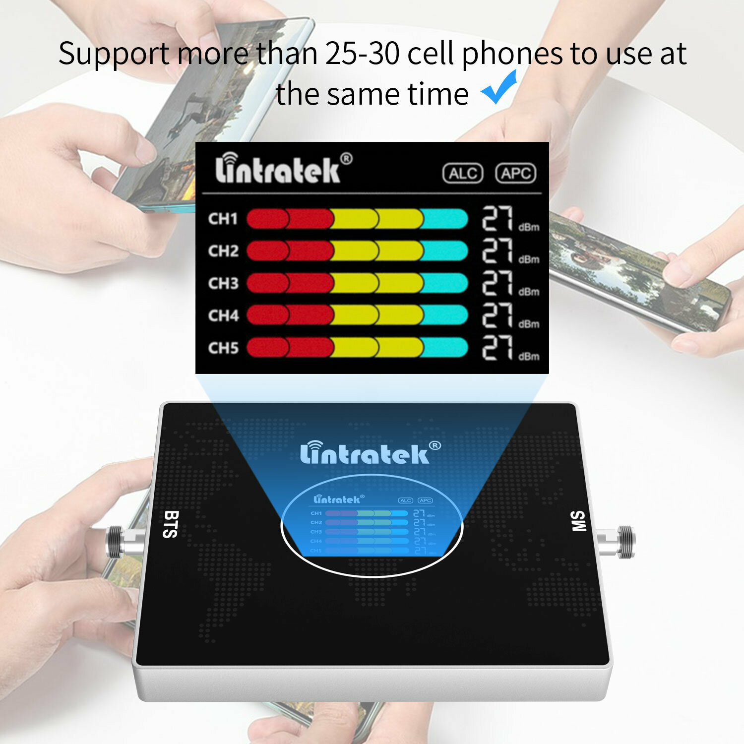 Усилитель сотовой связи Lintratek 5 диапазонов 800-2600 МГц с AGC антенна 4G 15м кабель 400 м² покрытие