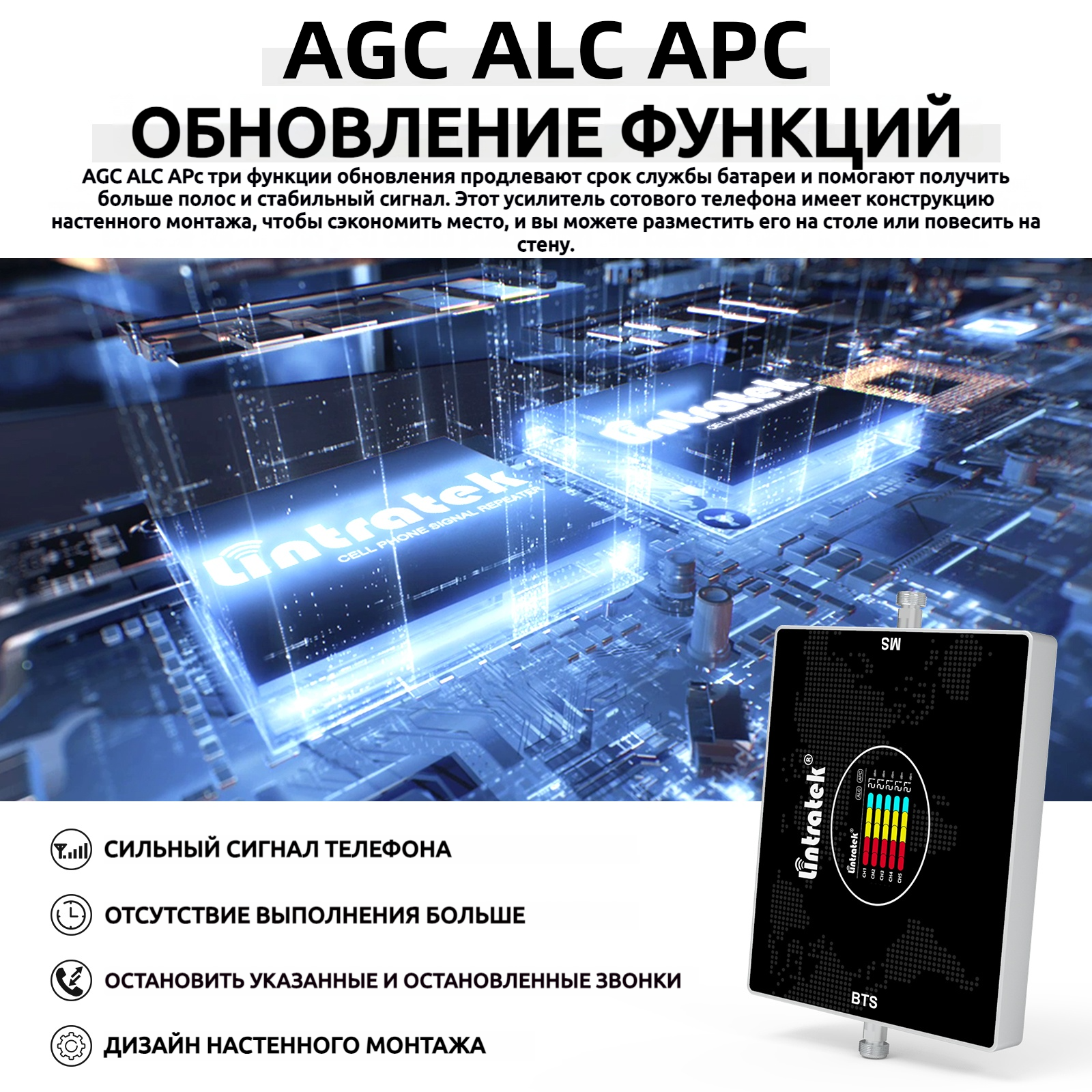 Усилитель сотовой связи Lintratek 5 диапазонов 800-2600 МГц с AGC антенна 4G 15м кабель 400 м² покрытие