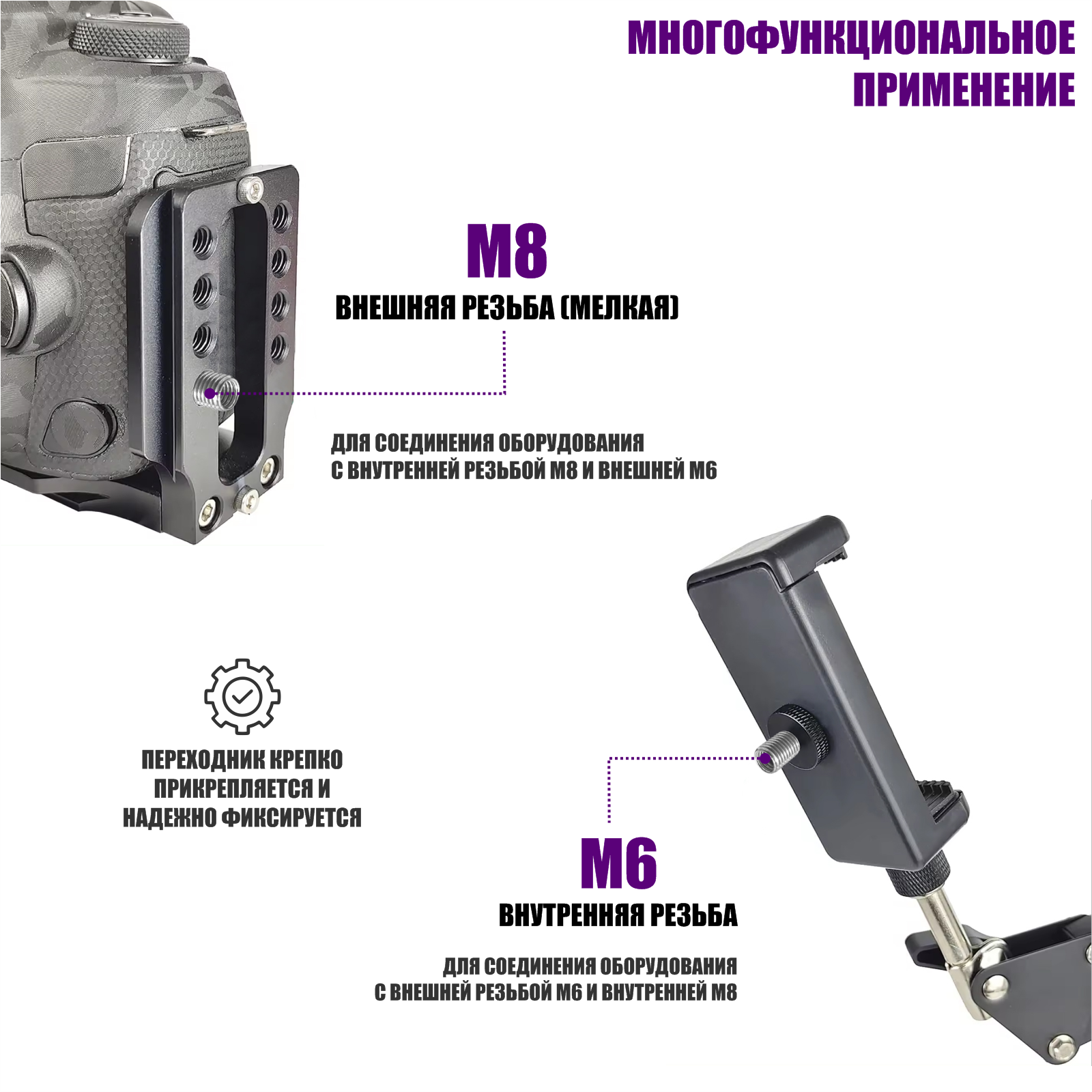 Резьбовая гайка переходник с внешней резьбой М8 и внутренней резьбой М6, высота 10 мм, 5 шт информация: