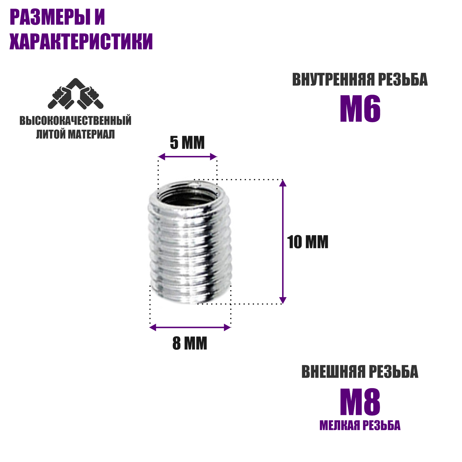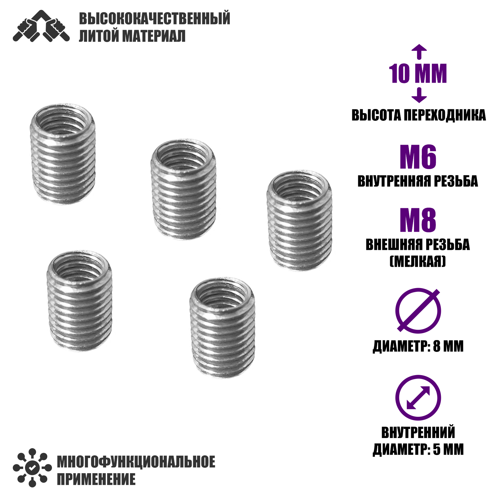 10 цен на Резьбовая гайка переходник с внешней резьбой М8 и внутренней резьбой М6, высота 10 мм, 5 шт