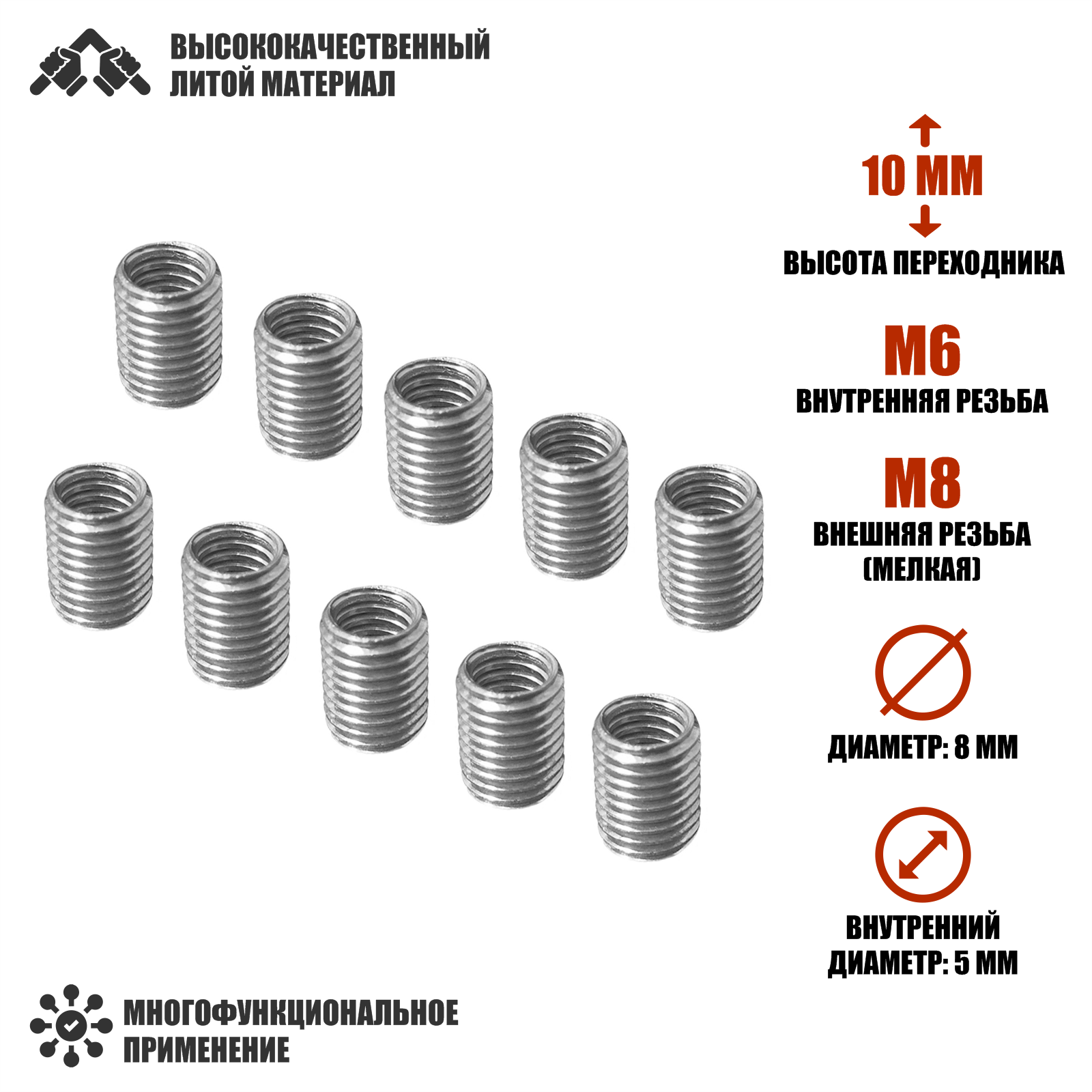 10 цен на Резьбовая гайка переходник с внешней резьбой М8 и внутренней резьбой М6, высота 10 мм, 10 шт