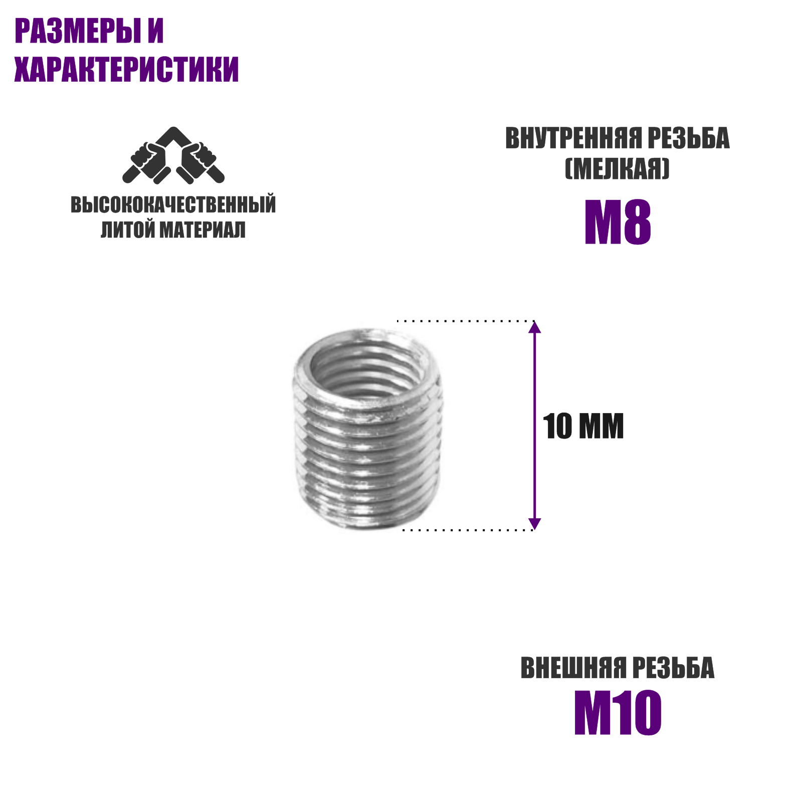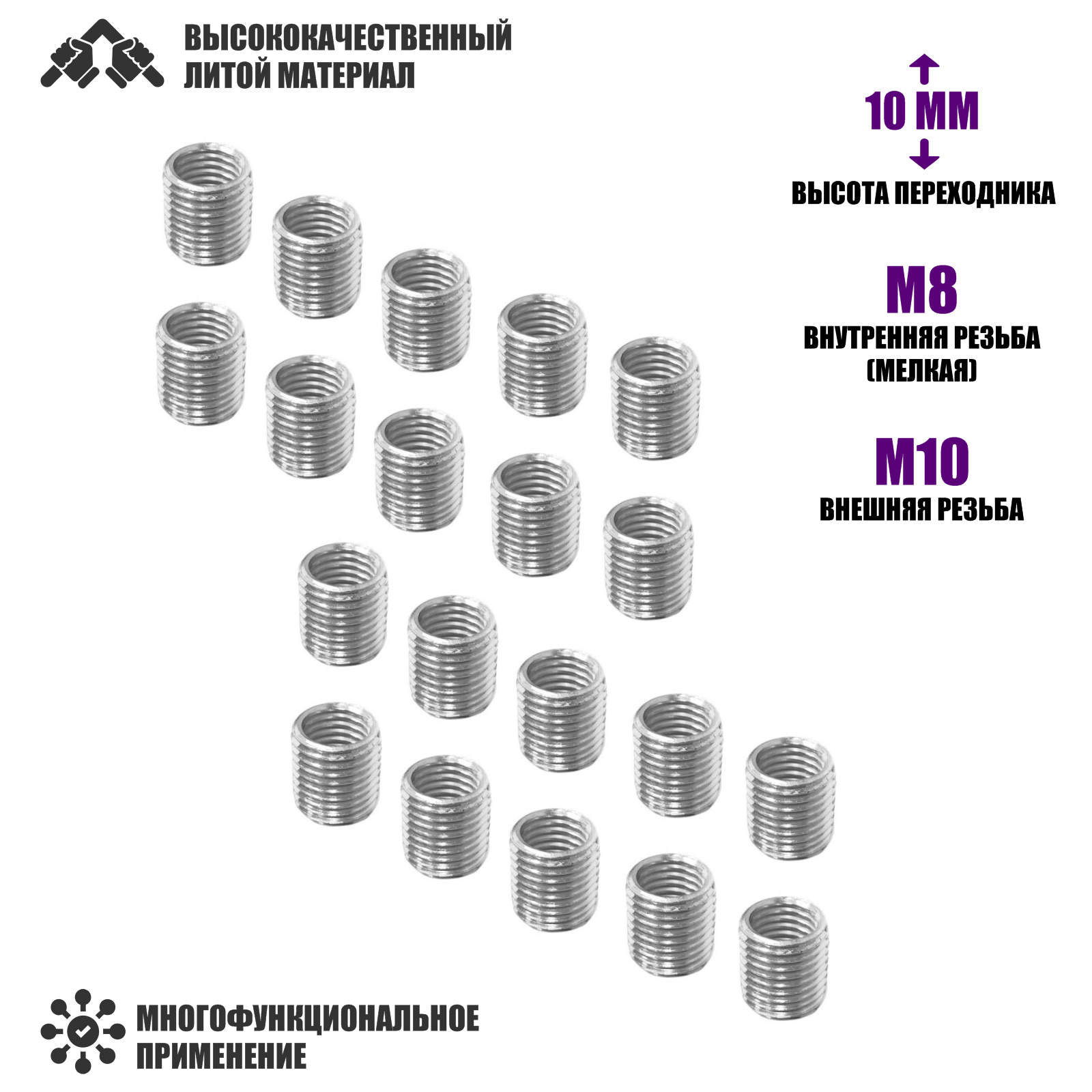 10 цен на Резьбовая гайка переходник с внешней резьбой М10 и внутренней резьбой М8, высота 10 мм, 20 шт