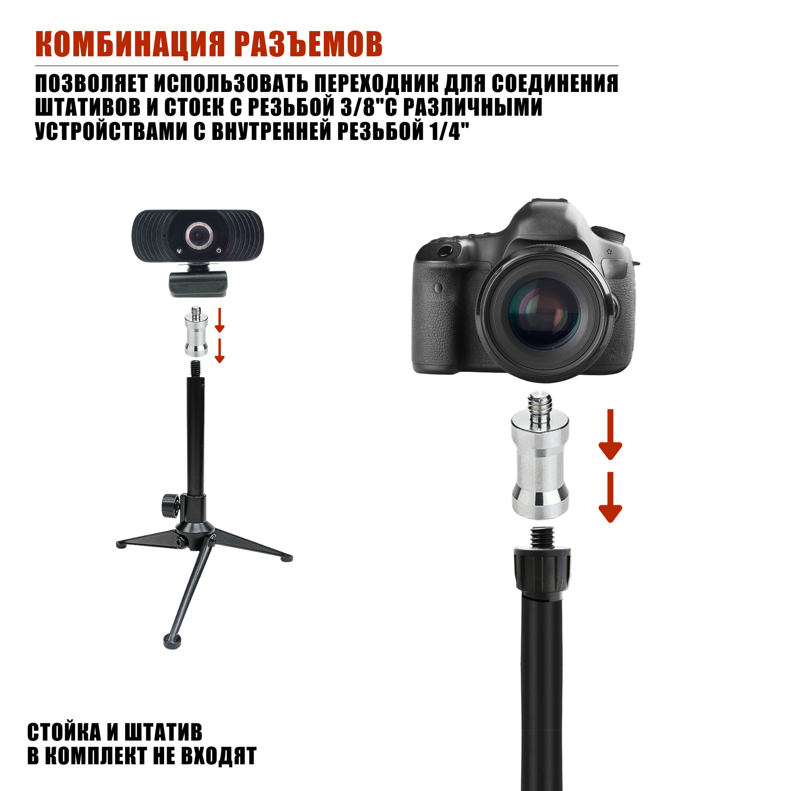 Адаптер-переходник 1/4"(M)-3/8"(F) для штативов и стоек, 10 шт информация: