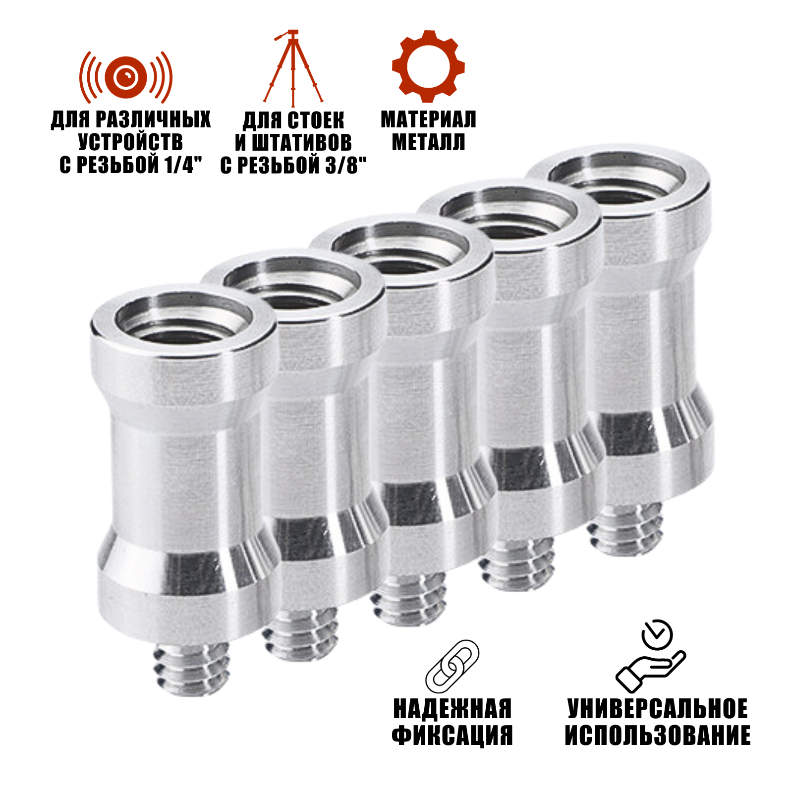 Характиристики этого товара не найдены!Отзывы на Адаптер-переходник 1/4"(M)-3/8"(F) для штативов и стоек, 10 шт