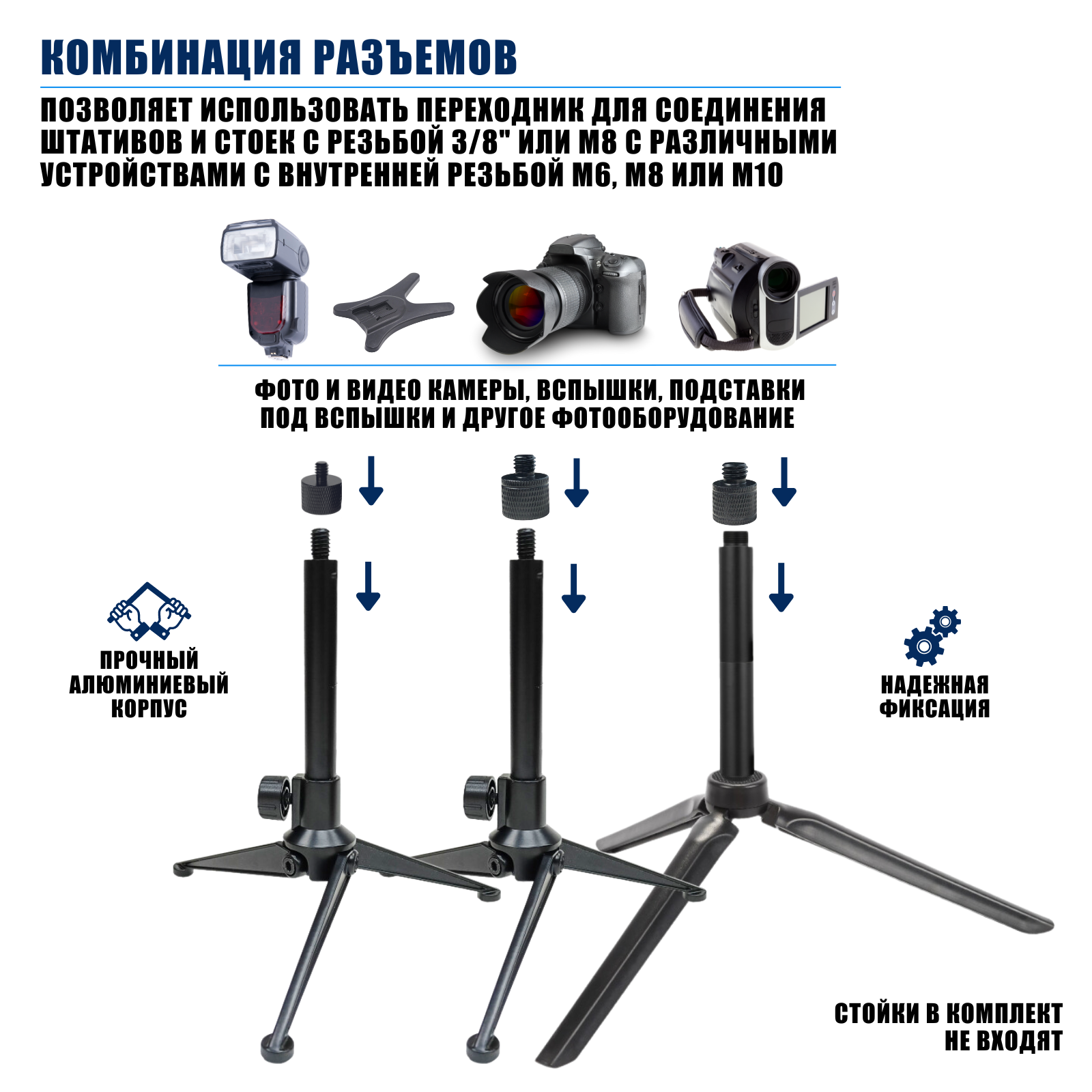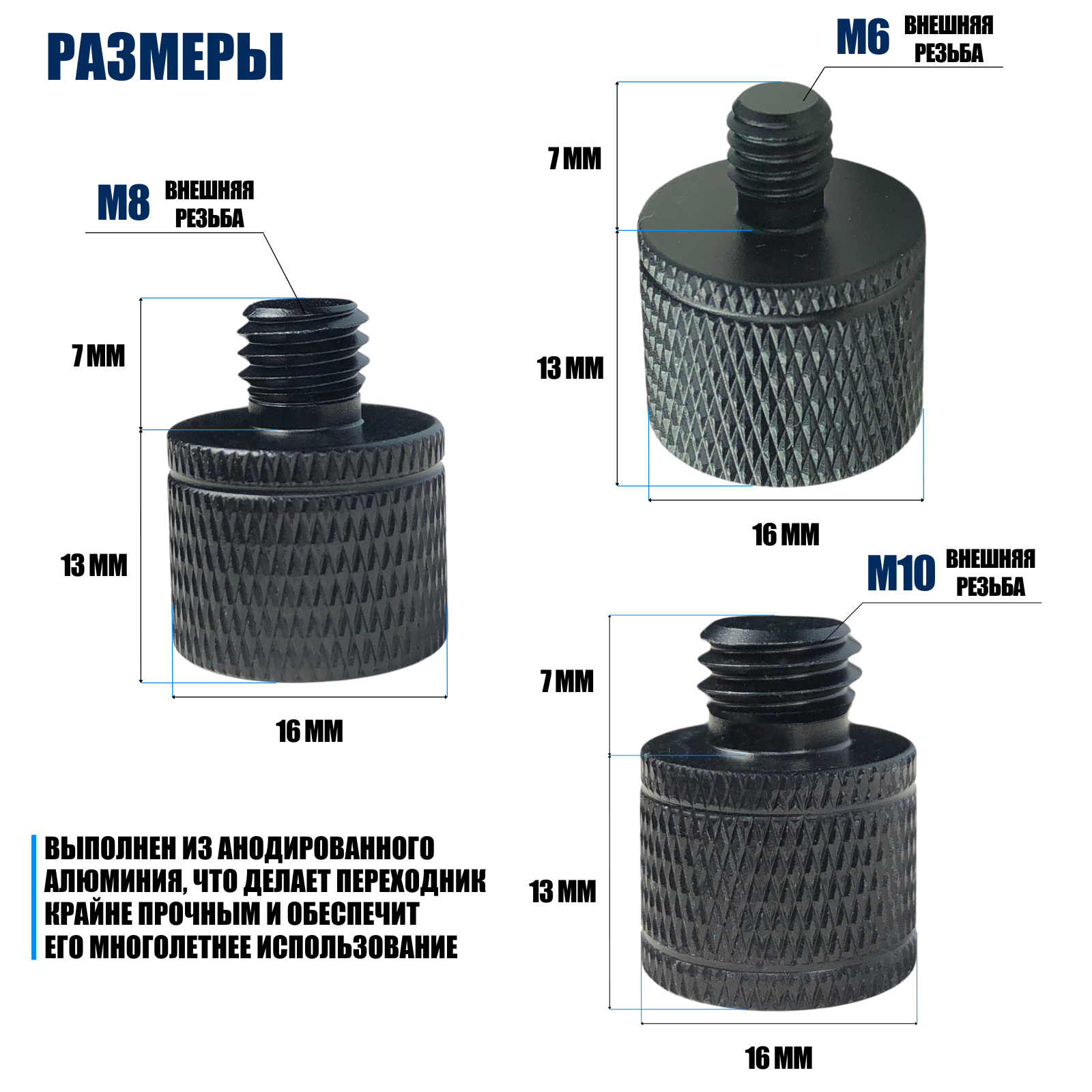 10 цен на Переходники с внутренней резьбы 3/8 на внешнюю резьбу M6 и М8 и с внутренней резьбы М8 на внешнюю резьбу M10
