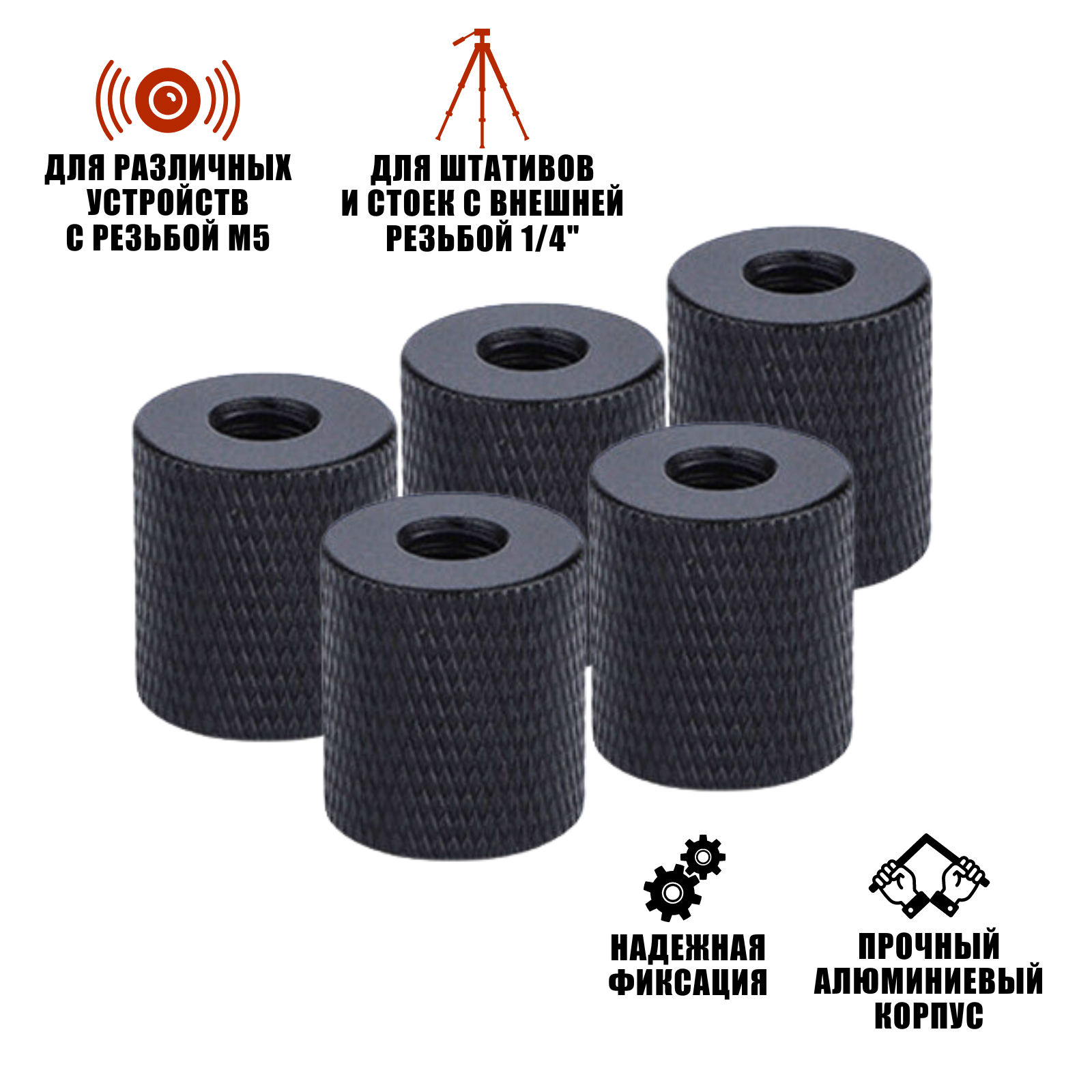 Переходник с резьбой 1/4"(F)-М5, черный, 5 шт информация: