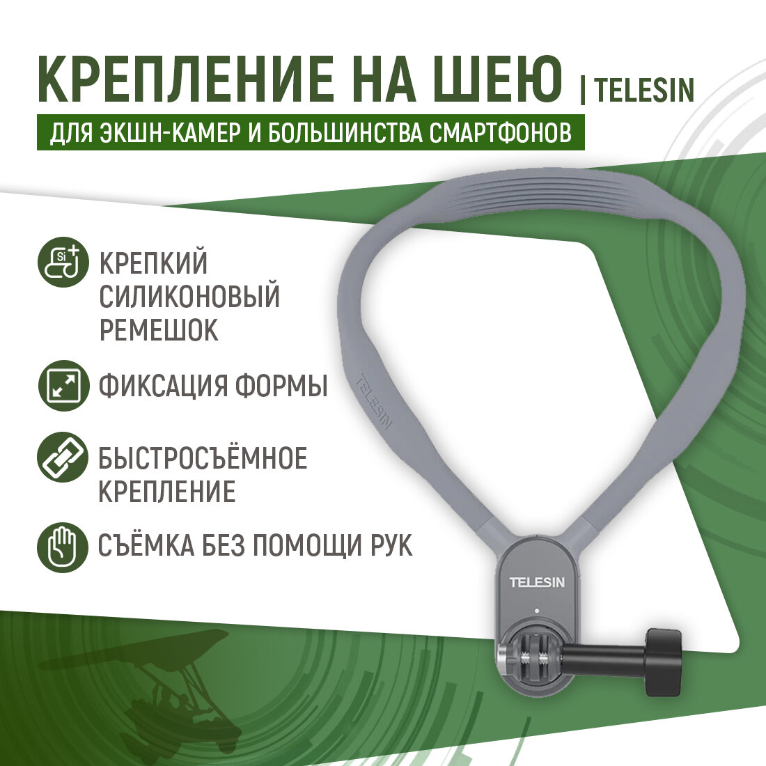 Отзывы на Крепление на шею Telesin для экшн камеры или телефона TE-HNB-001