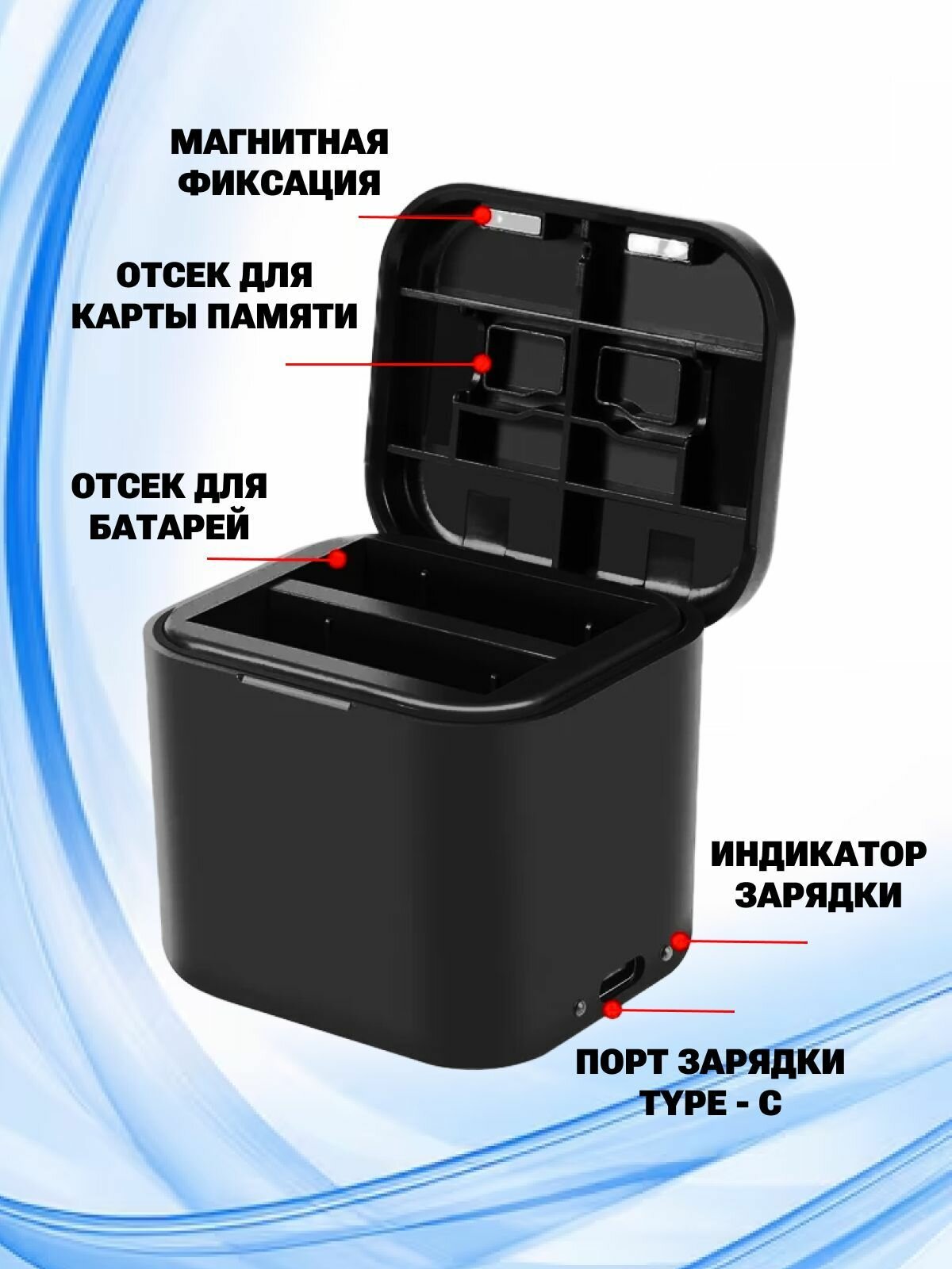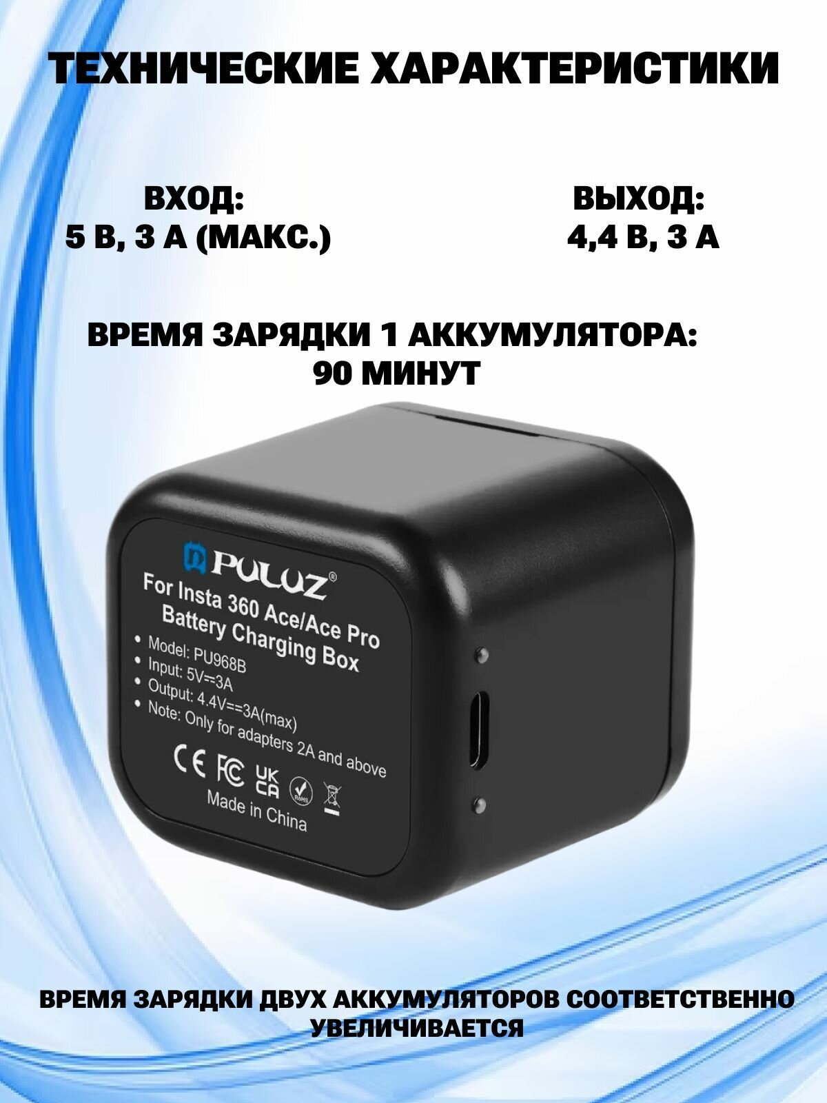 Зарядное устройство для Insta360 Ace Pro2 / Ace Pro / Ace, для 2х аккумуляторов, с местом для хранения карт памяти информация: