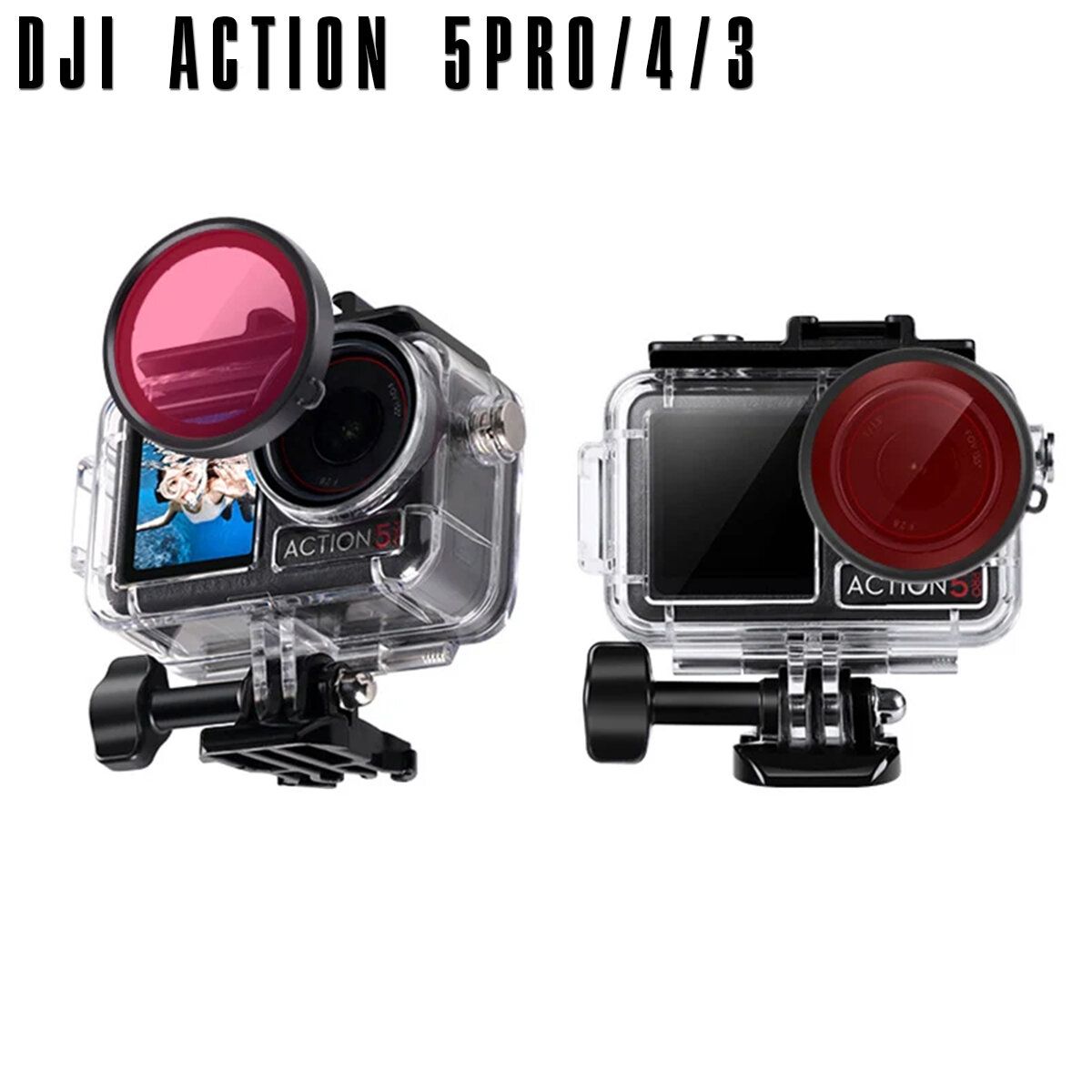10 цен на Водонепроницаемый чехол для экшен камеры DJI Action5/4/3 pro, три фильтра (темно-красный, светло-красный, фиолетовый)