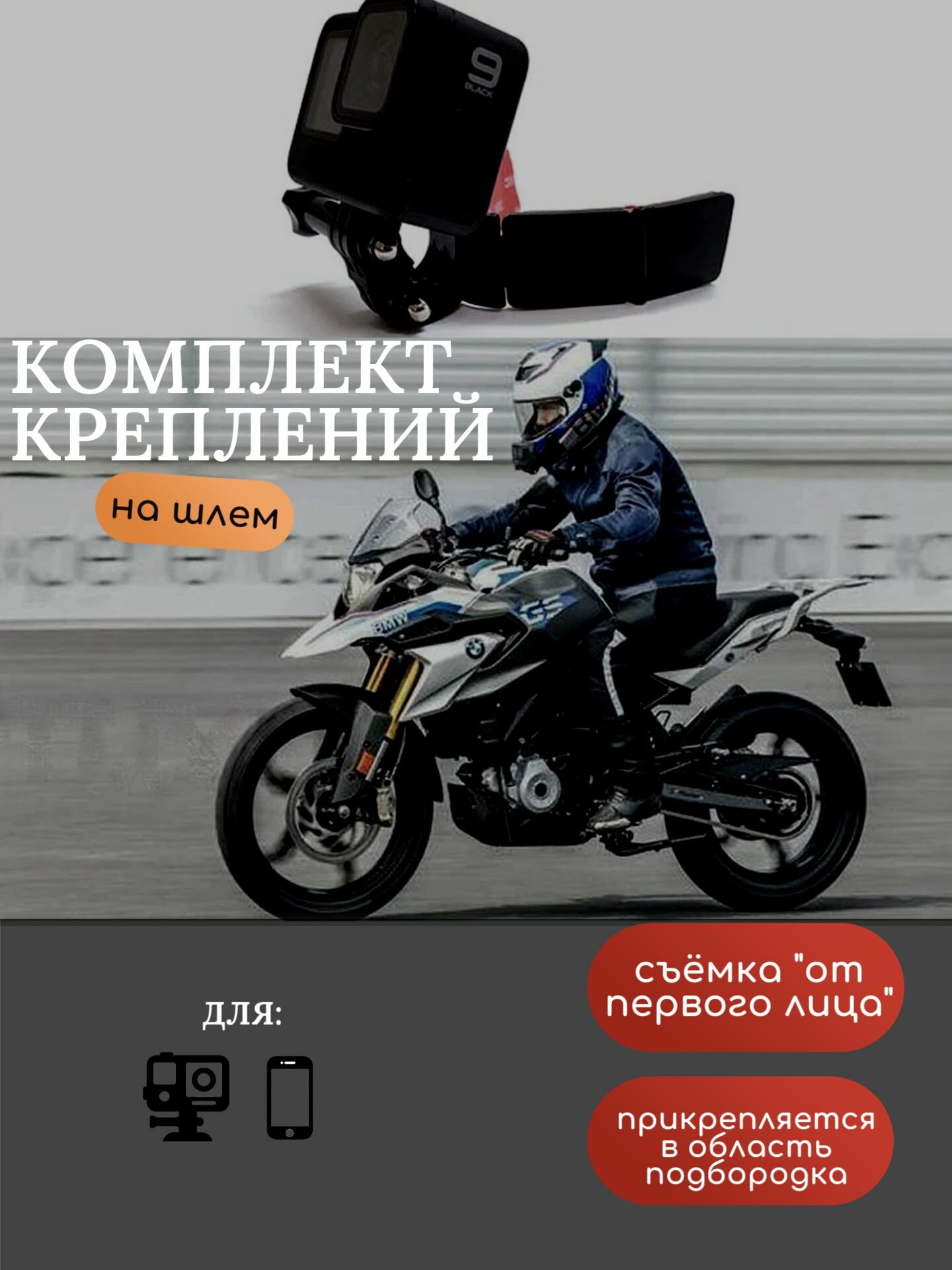 Комплект креплений для экшн камеры на шлем мотоцикла с держателем для телефона информация: