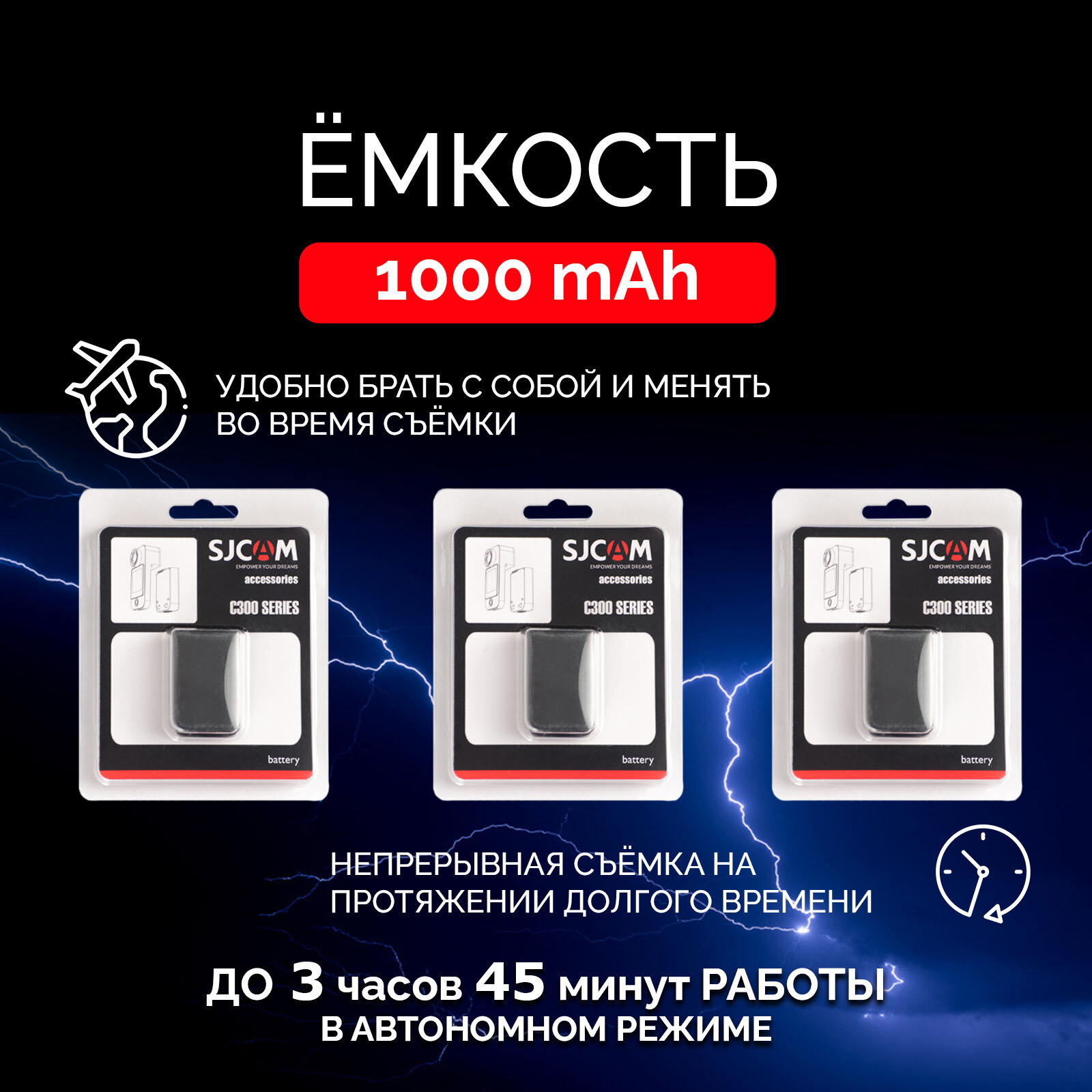 Отзывы на Аккумулятор для экшн-камер SJCAM C300, аккумулятор 1000 mAh, черный