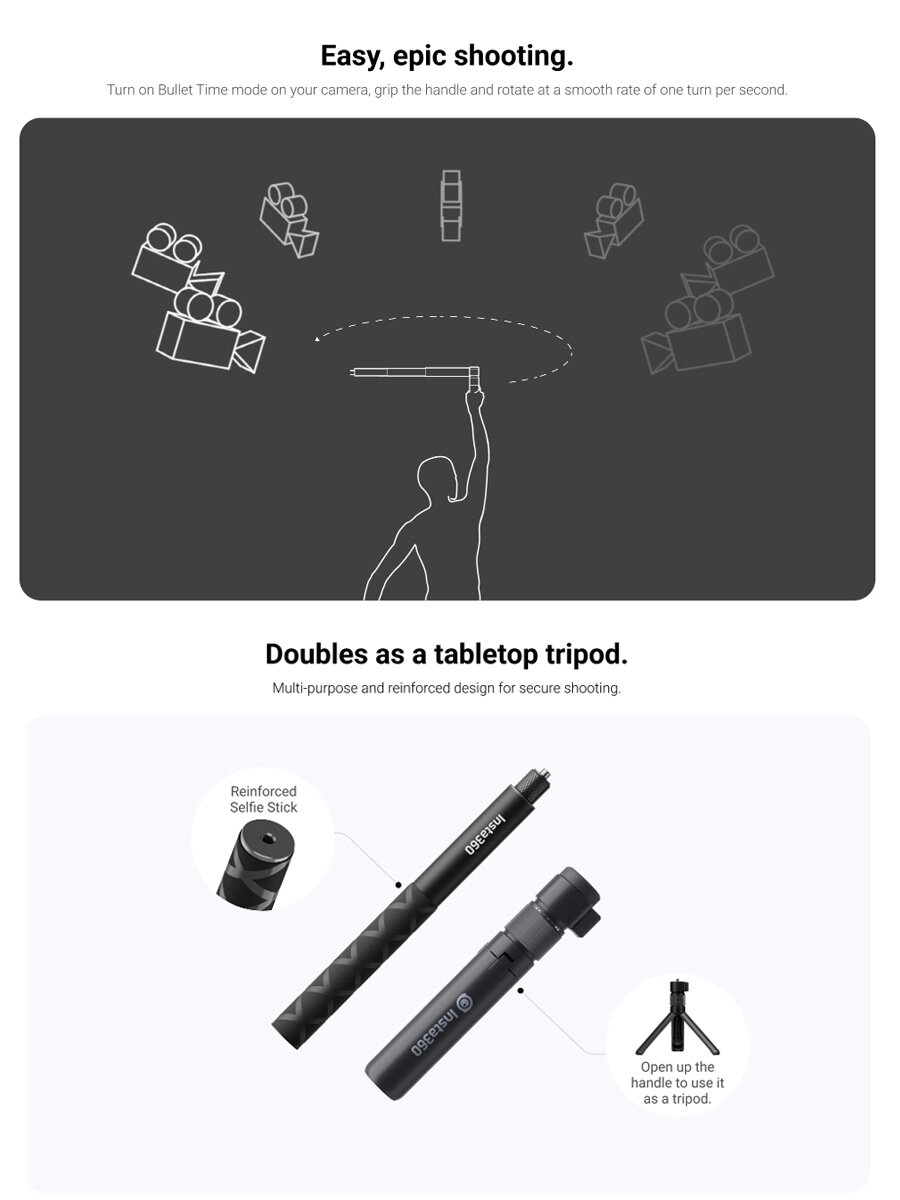 Отзывы на Аксессуар для экшн-камеры Insta360 Bullet Time Kit (Tripod Handle + 114cm Selfie Stick)