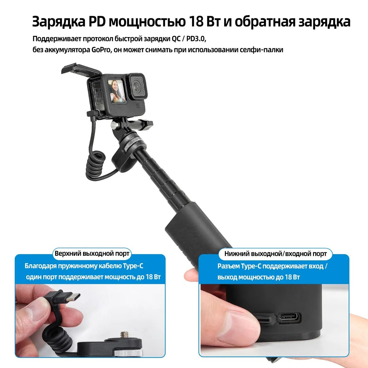 Отзывы на Универсальная зарядная селфи-палка TELESIN, 10000 мАч, до 90 см