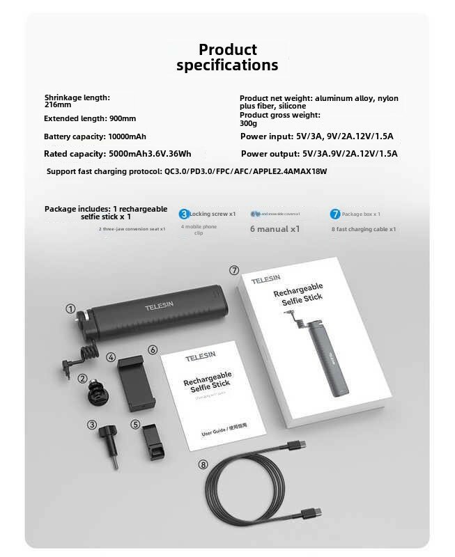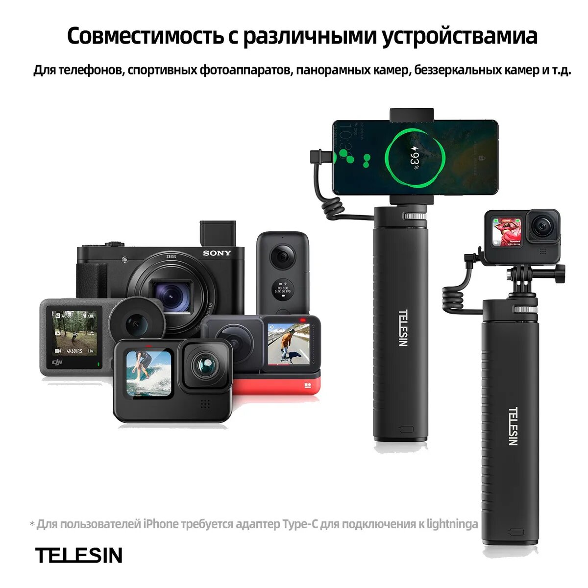 Универсальная зарядная селфи-палка TELESIN, 10000 мАч, до 90 см информация: