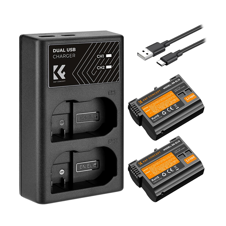 2 аккумулятора EN-EL15 + зарядное устройство K&F Concept KF28.0012 информация: