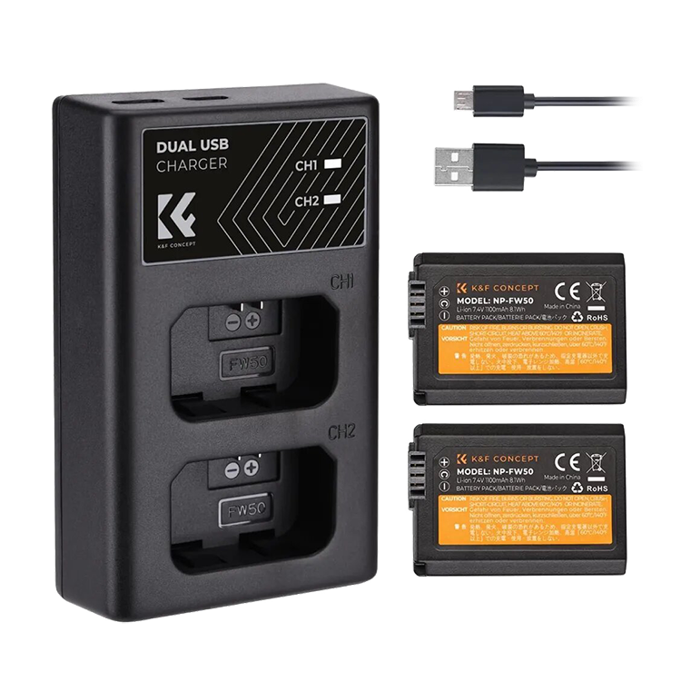 10 цен на 2 аккумулятора NP-FW50 + зарядное устройство K&F Concept KF28.0015