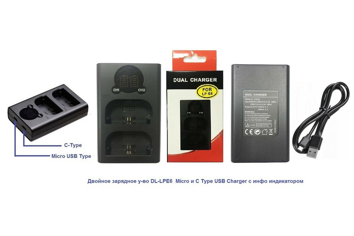 10 цен на Двойное зарядное у-во DL-LPE6 Micro и C Type USB Charger с инфо индикатором
