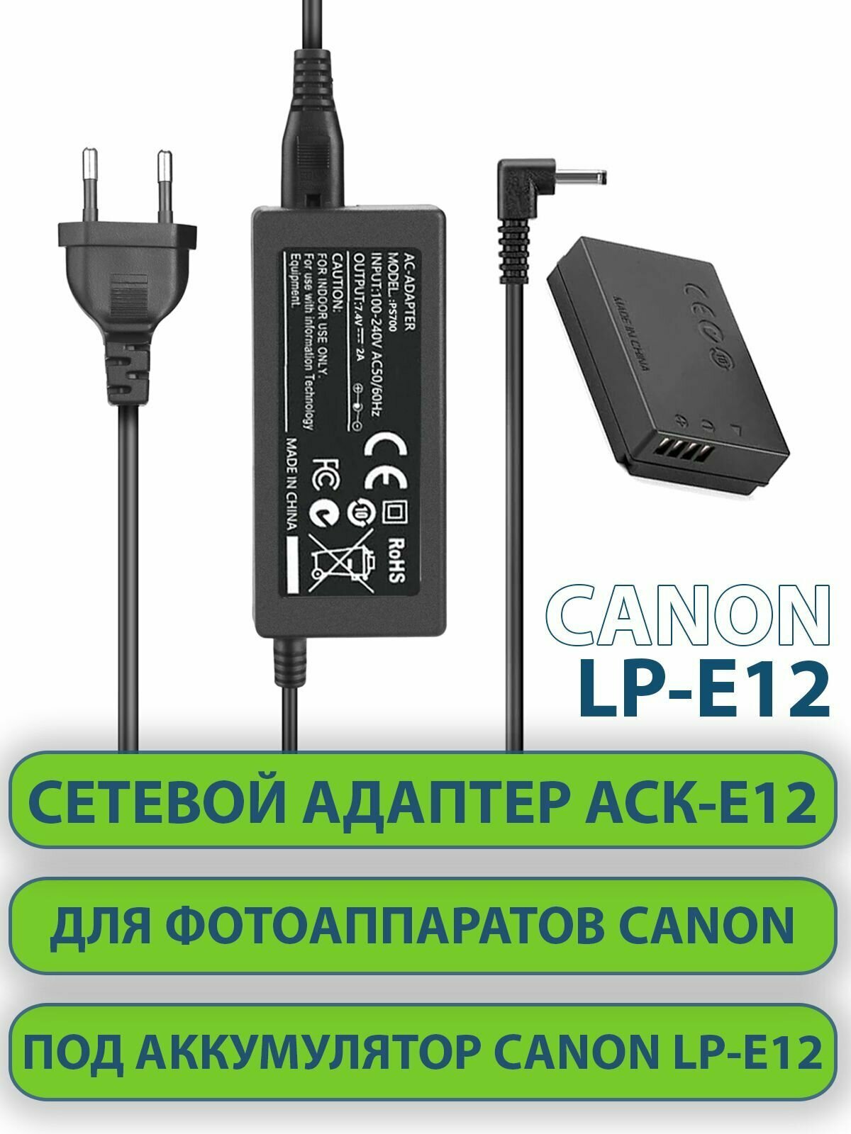 Сетевой адаптер-переходник для питания от сети ACK-E12 батарея-пустышка для фотоаппаратов Canon EOS 100D M M2 M10 M50 M100 M200 информация: