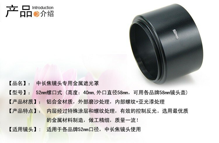 10 цен на Металлическая бленда для объектива 62 мм черная Canon Nikon Sony, 62 мм