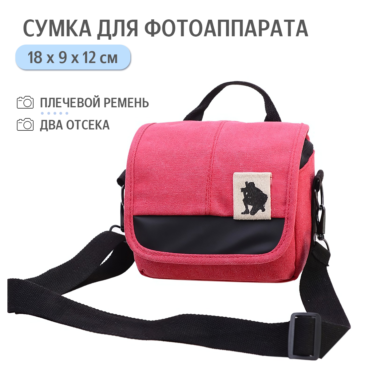 10 цен на Сумка для фотоаппарата, текстиль, два отсека, плечевой ремень, цвет розовый