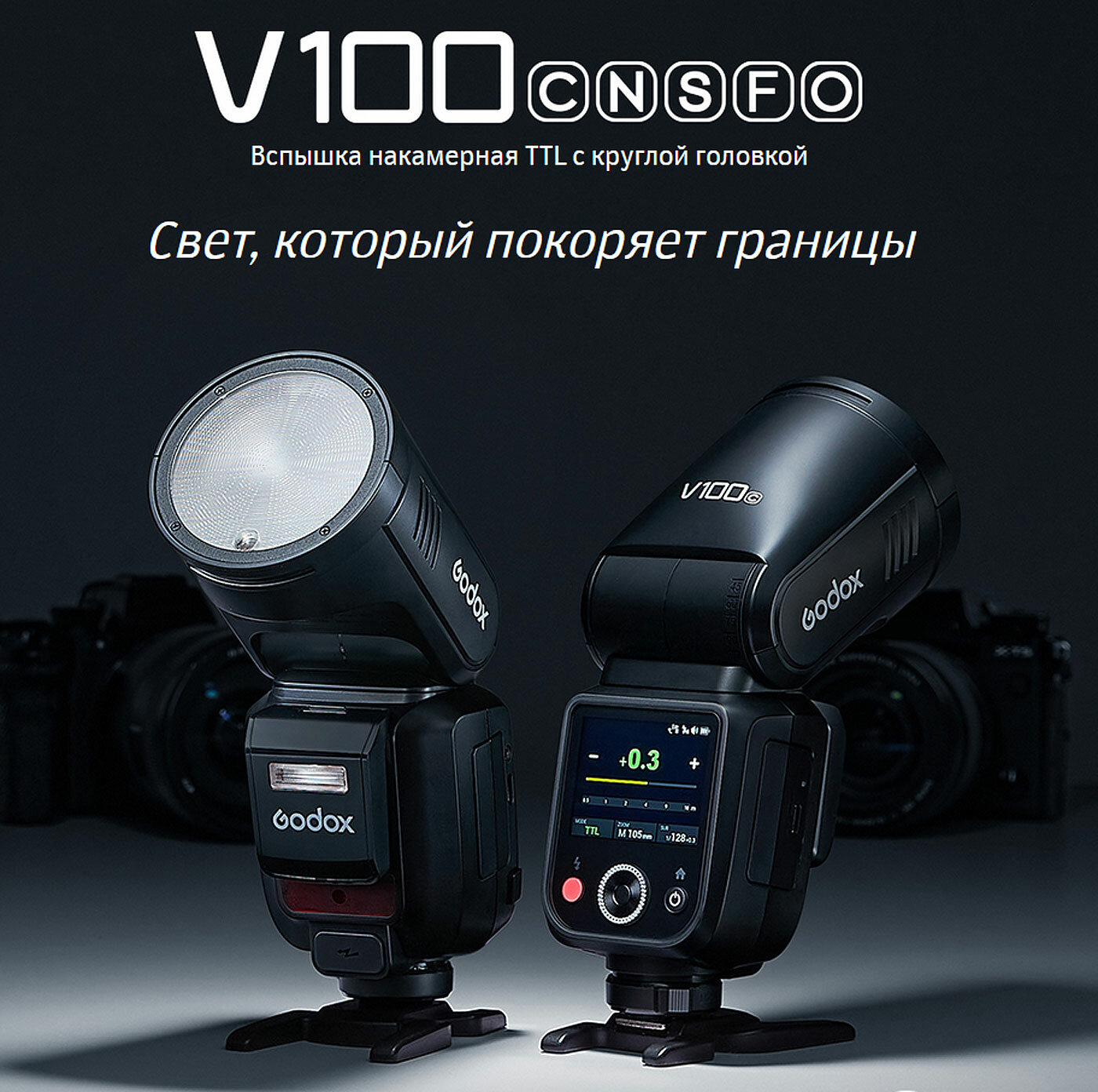 Вспышка накамерная Godox V100C TTL с круглой головкой для Canon информация: