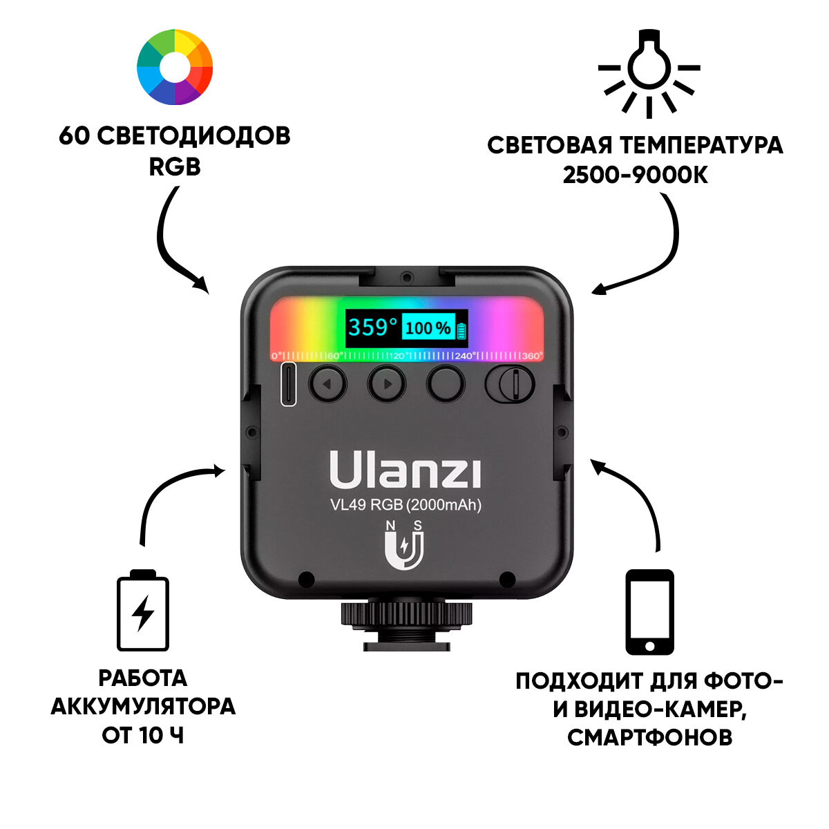 Осветитель накамерный Ulanzi VL200 2500-9000K для мобильной фото- и видеосъемки