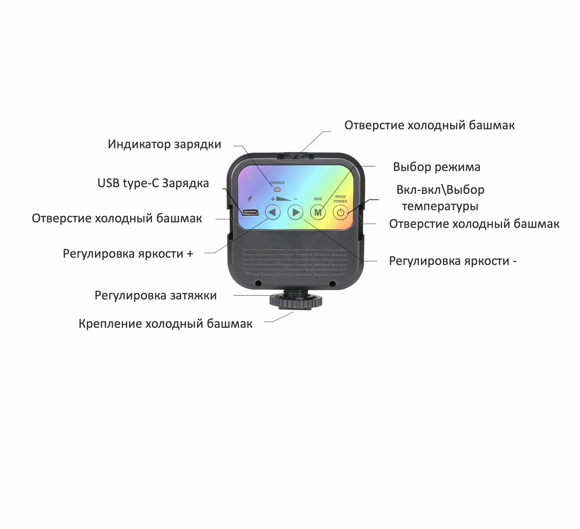 Свет для съемки WL-R1 RGB, накамерный студийный видеосвет для съемки стрима видео, фото селфи, для блогеров информация: