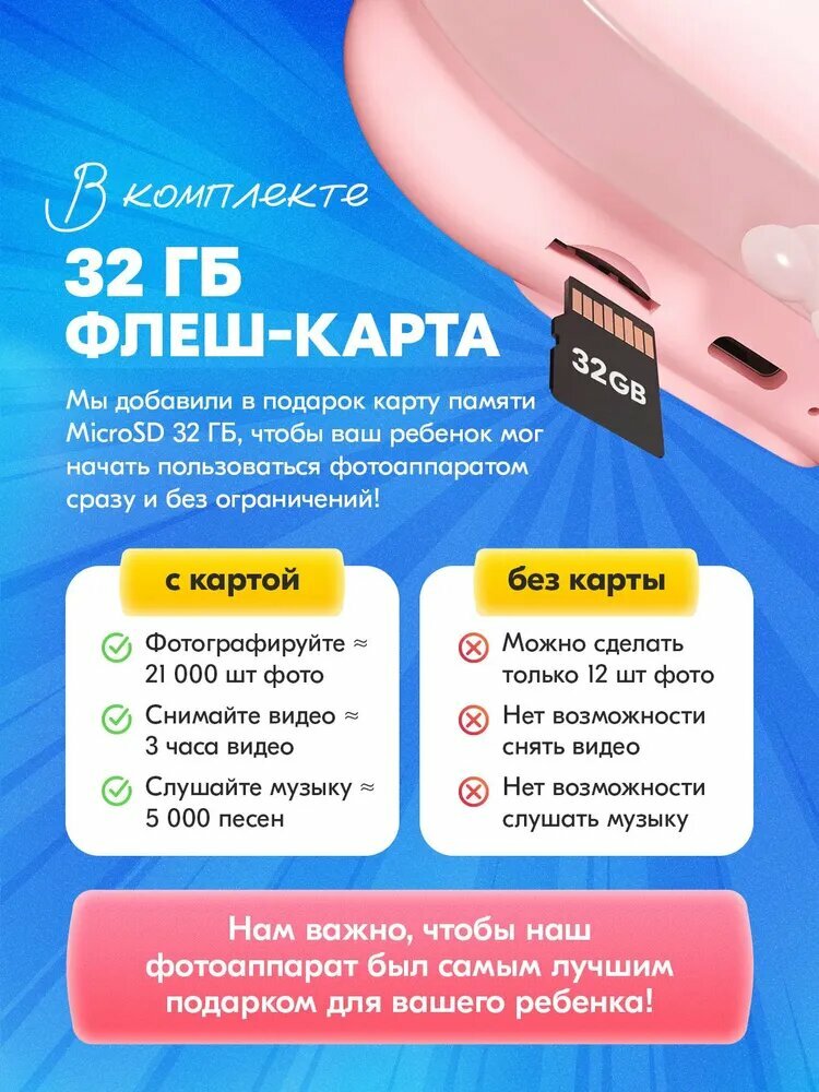Детский фотоаппарат моментальной печати с расширенным набором информация: