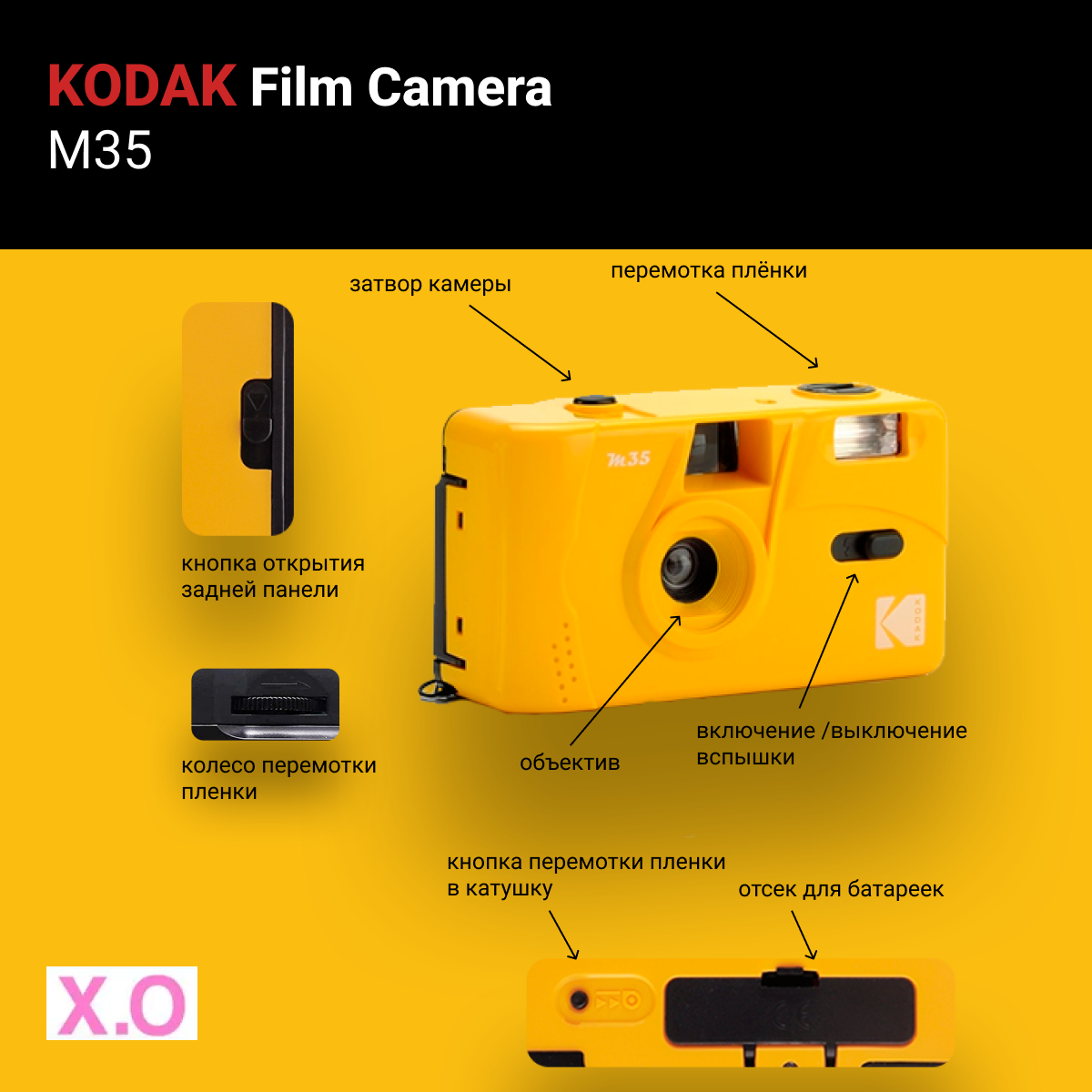 Многоразовый плёночный фотоаппарат Kodak M35 35 мм (тип 135) лимонный информация: