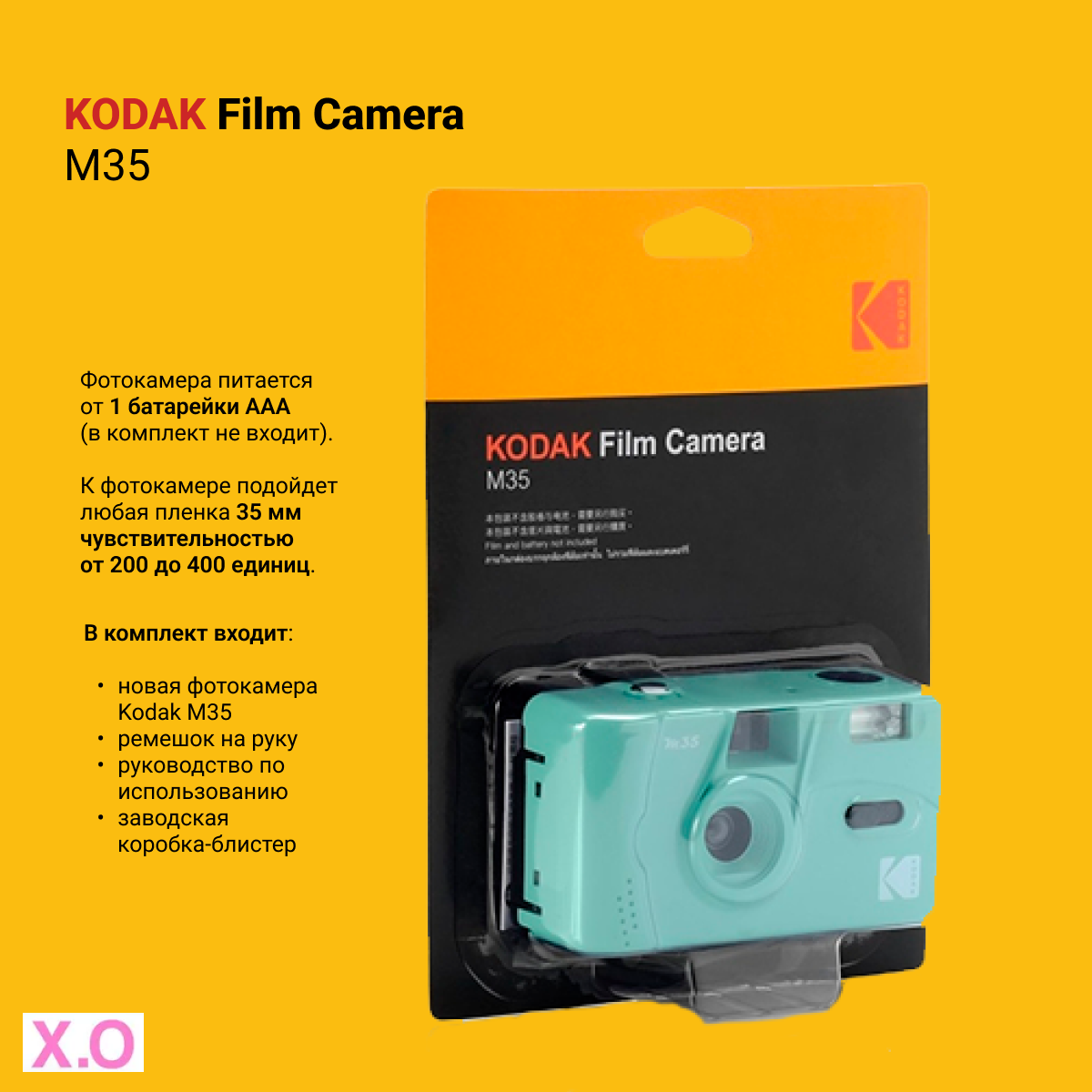 Многоразовый плёночный фотоаппарат Kodak M35 35 мм (тип 135) фисташковый информация: