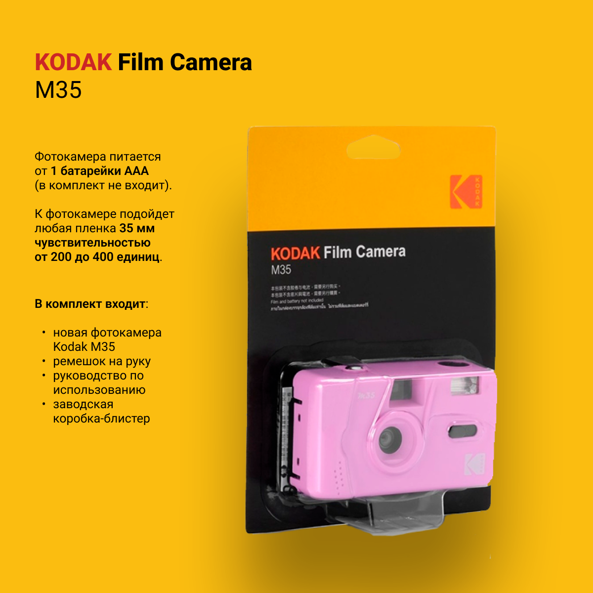 Многоразовый плёночный фотоаппарат Kodak M35 35 мм (тип 135) фиолетовый информация: